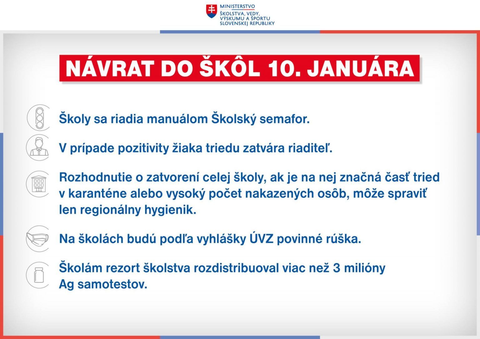Podmienky nástupu do školy od pondelka 10. januára 2022 upresnilo ministerstvo školstva, pozrieť si ich môžete v infografike.
