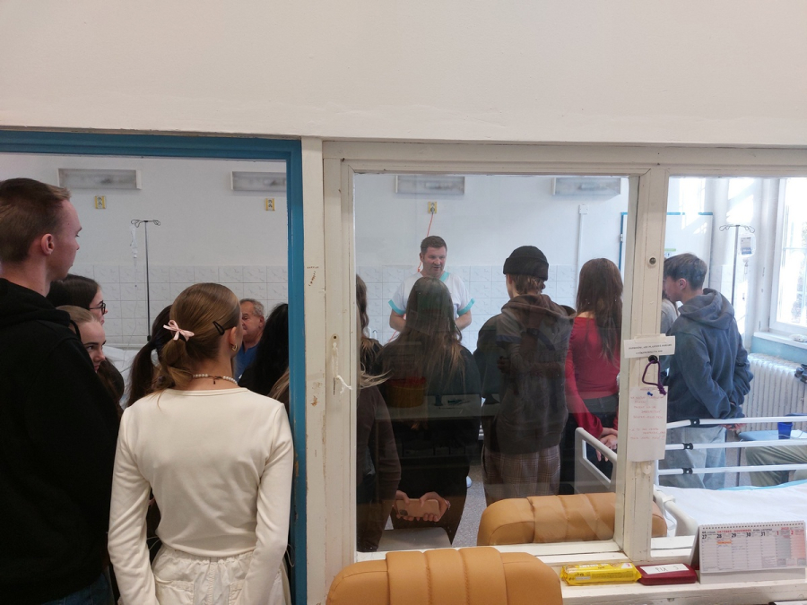 Slavomír Čuj, dipl. vedúca sestra, nás previedol psychiatrickým oddelením a porozprával nám ako zabezpečujú starostlivosť pre pacientov s psychiatrickými poruchami. Medzi najčastejšie dôvody na hospitalizáciu sú závislosti na alkohole, depresie, afektívne poruchy, schizofrénie a psychózy.