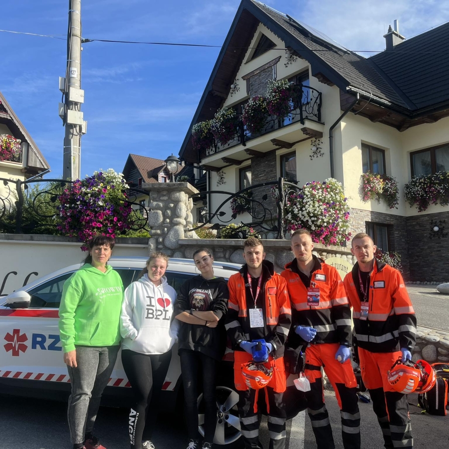 Dňa 22.9.2023 sme sa zúčastnili záchranárskej súťaže „Rescue Lesnica“ v Ždiari. V rámci 20. ročnej spolupráce našu školu každý rok osloví náš bývalý absolvent a súčasne aj predseda Komory zdravotníckych záchranárov Mgr. F. Majerský, aby sme znázornili/namaskovali rôzne poranenia podľa súťažných zadaní na jednotlivých stanovištiach. My ani na chvíľu neváhame a samozrejme ochotne zapojíme naše žiačky do tejto akcie. Tento rok našu školu reprezentovali Karin Vilková a Michaela Balážová zo IV. PS B a Dominika Baková z II. PS B. Atmosféra na súťaži bola veľmi príjemná, zaujímavá a pre naše študentky aj náučná. Stretli sme tam aj známe tváre, ktoré nás milo prekvapili svojimi vedomosťami pri poskytovaní prvej pomoci. Záchranári nás privítali a spolupracovali pri maskovaní rán. Našou úlohou bolo reálne znázorniť otvorenú zlomeninu predlaktia, zatvorenú zlomeninu stehnovej kosti, tržnú ranu na čele, poranenie stehnovej tepny, popáleniny I., a II. stupňa na tvári, krku a hrudníku, bledosť, uštipnutie hmyzom. Sme veľmi radi , že sme sa mohli podieľať na tejto celoslovenskej akcii a videli sme rôzne zásahy zdravotníckych záchranárov v situáciách, ktoré sa v bežnom živote stávajú častejšie ako si myslíme. Týmto chceme poďakovať aj pani profesorke Takáčovej za skvelú skúsenosť a príjemne prežitý deň.