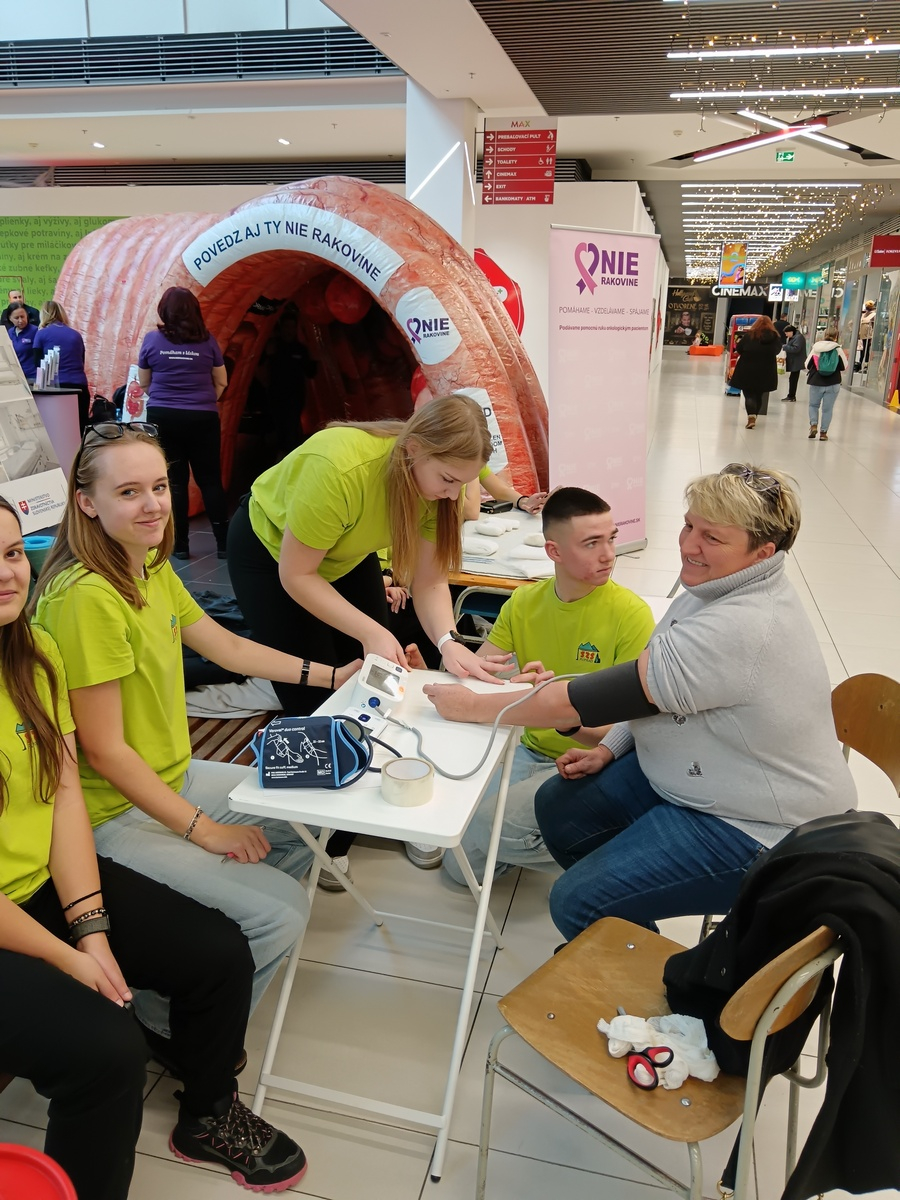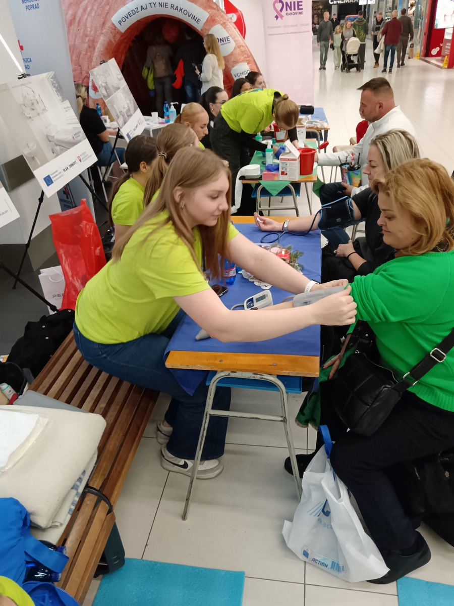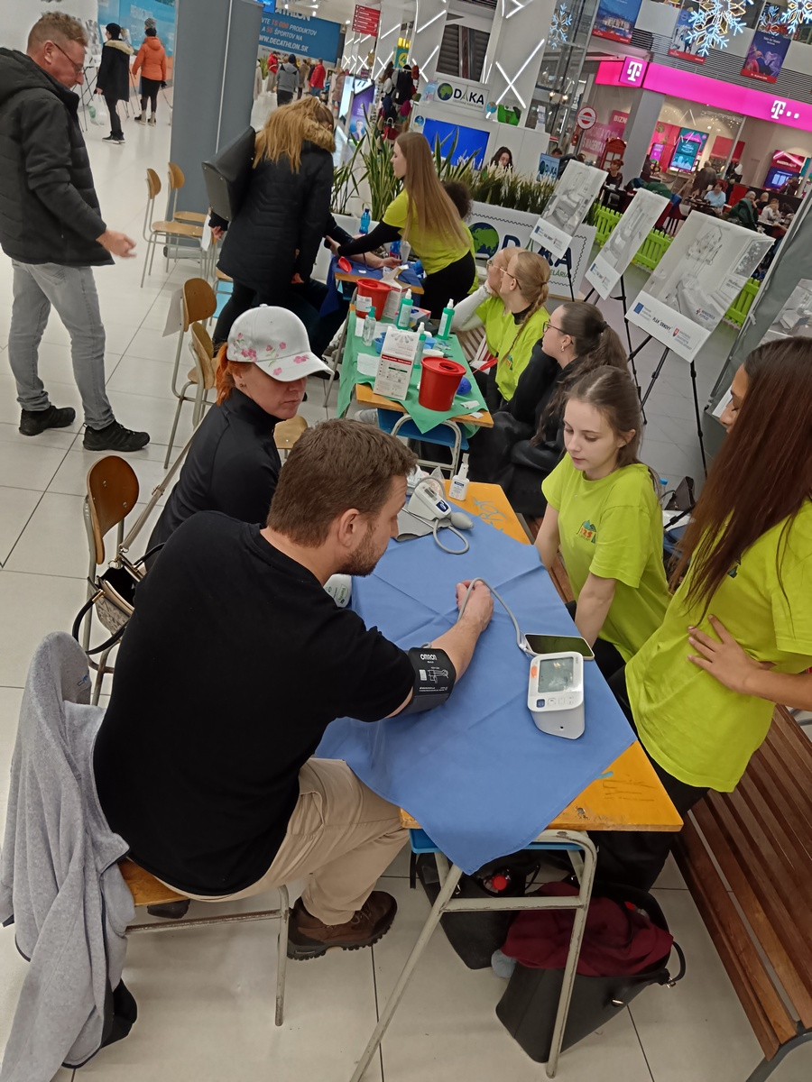 V dňoch 29. a 30. novembra 2025 sa členovia nášho krúžku Červený kríž aktívne zúčastnili akcie "MAX zdravia a prevencie". Podujatie, ktoré sa konalo v OC Max v Poprade v spolupráci s Nemocnicou Poprad. Okoloidúcim návštevníkom sme zmerali krvný tlak, zistili hladiny cukru v krvi, predviedli zhotovovanie rôznych typov obväzov. Týmto sme názorne ukázali, čo všetko sa naši žiaci učia a vedia. Následne mali všetci zúčastnení možnosť porozprávať sa s odborníkmi z rôznych odvetví medicíny, vrátane neurológa, diabetológa, rehabilitačného lekára, očného lekára a výživového poradcu. Cenné informácie poskytli aj dobrovoľníci z občianskeho združenia Nie rakovine.