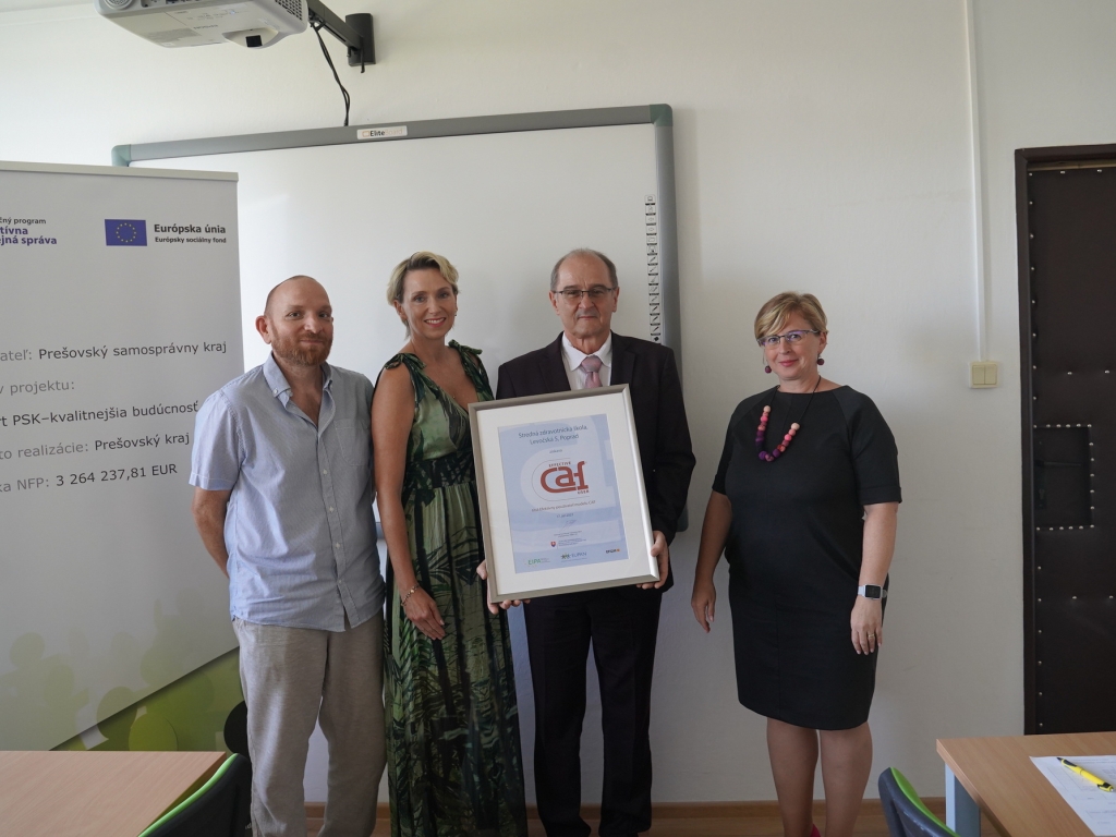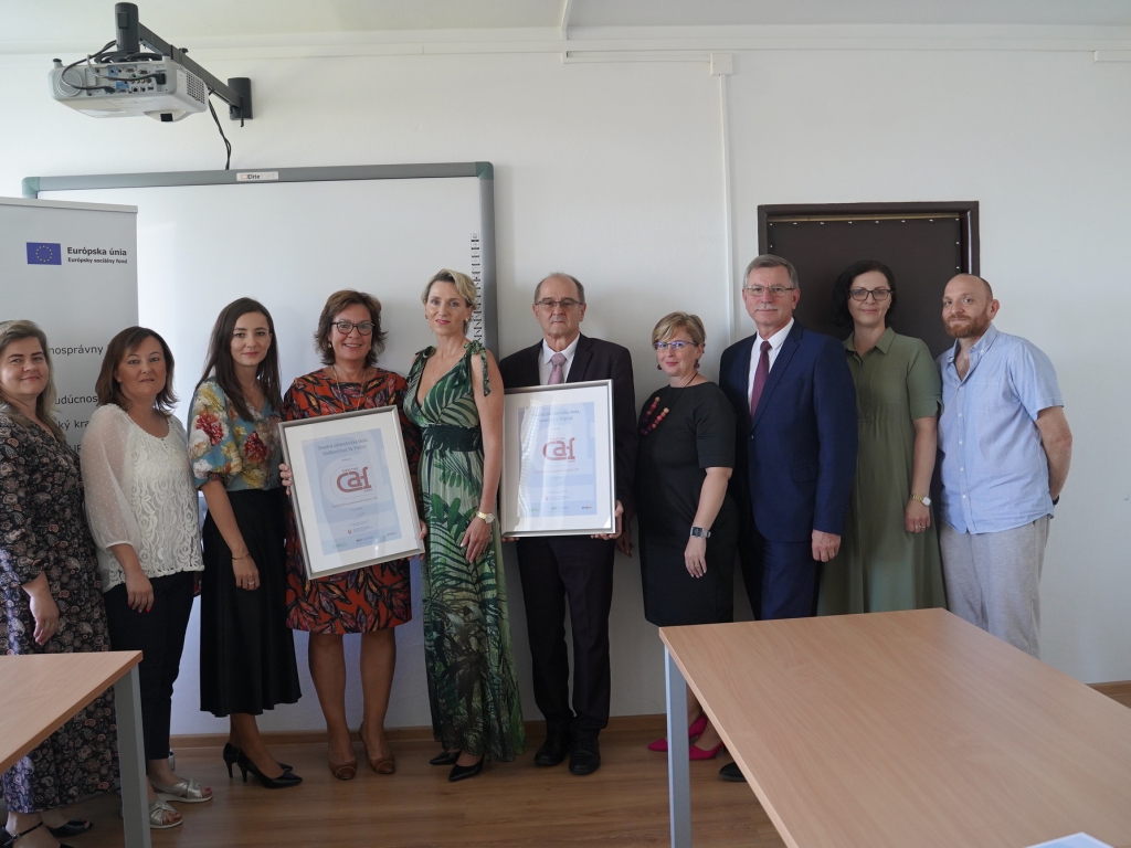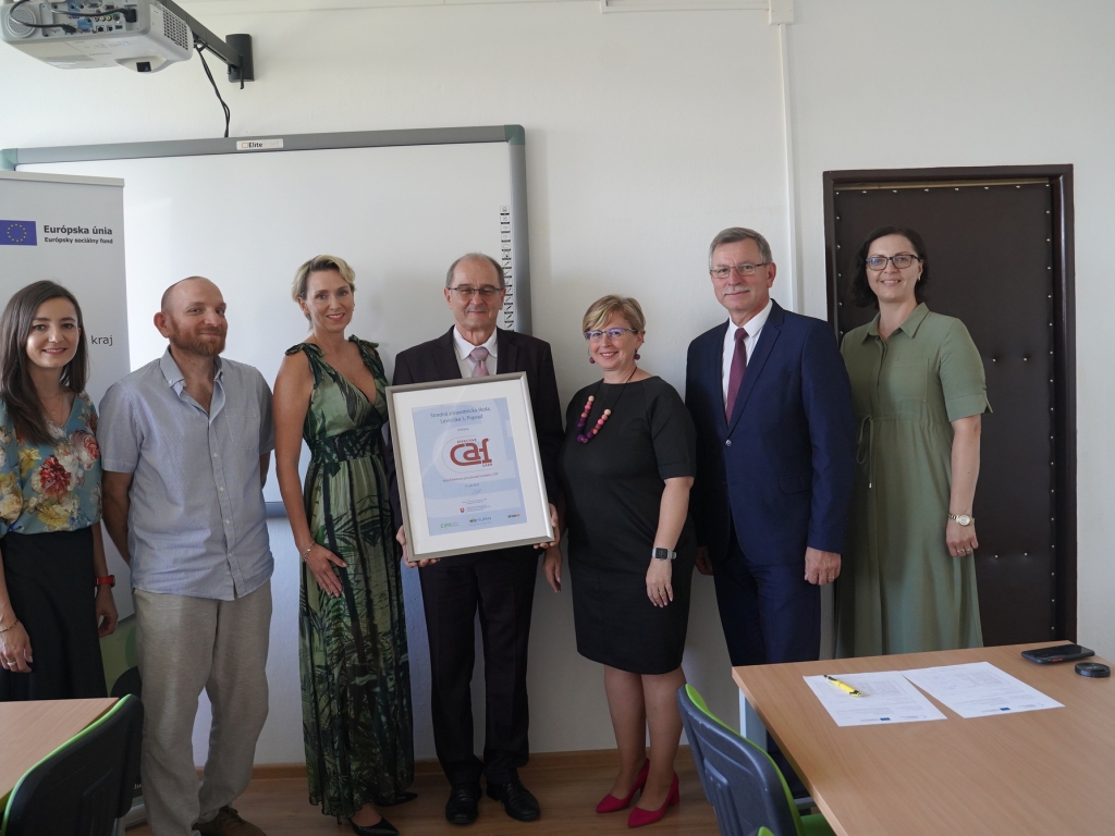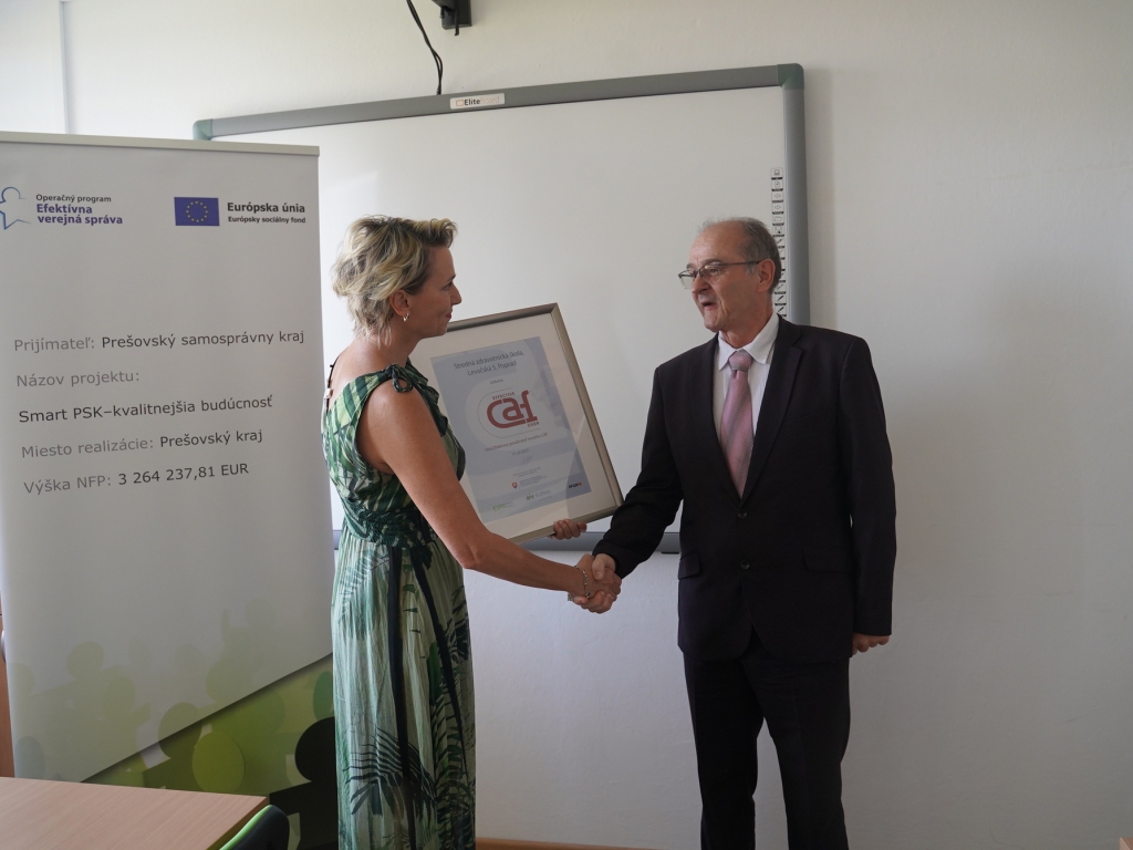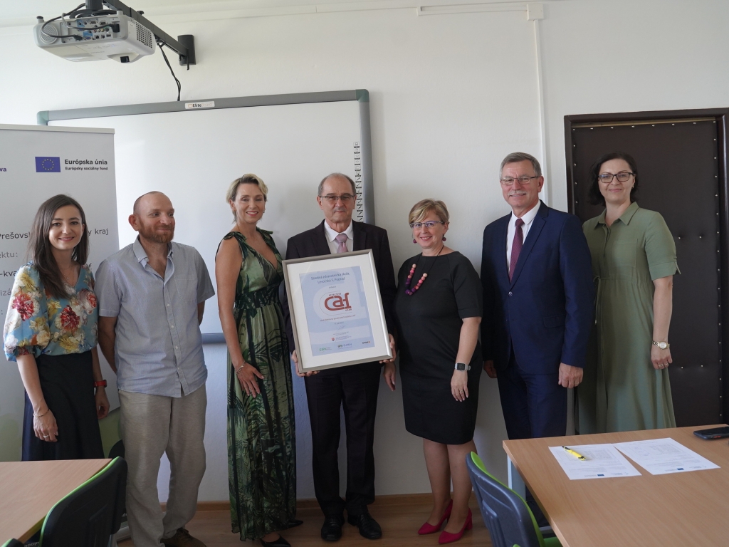 V stredu, 7. septembra za účasti vedúceho odboru školstva PaedDr. Jána Furmana a predsedníčky Úradu pre normalizáciu, metrológiu a skúšobníctvo SR Kataríny Surmíkovej Tatranskej, si riaditeľ Mgr. Miroslav Bednár prevzal ocenenie dvojročnej práce celej školy vo forme ocenenia EFEKTÍVNY POUŽÍVATEĽ MODELU CAF.