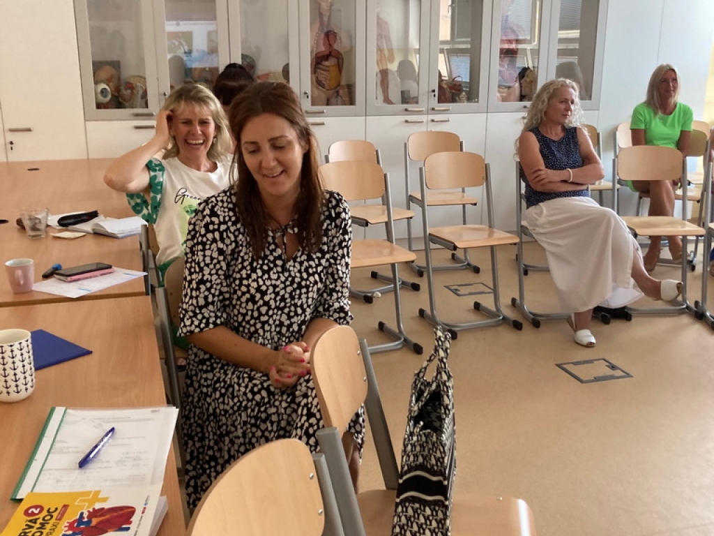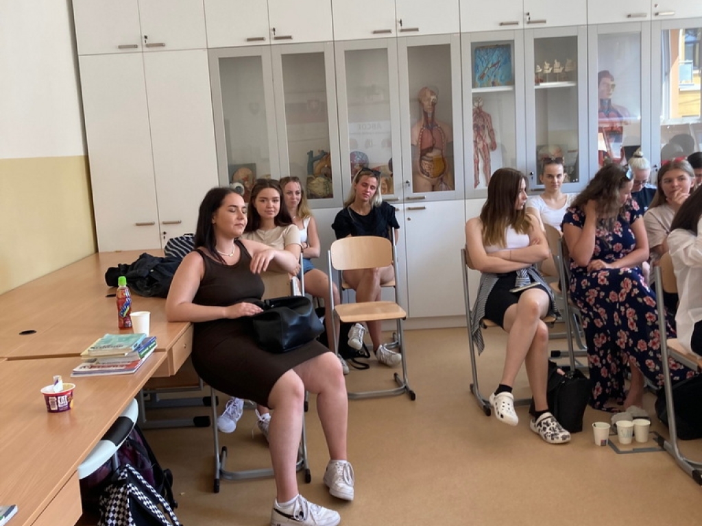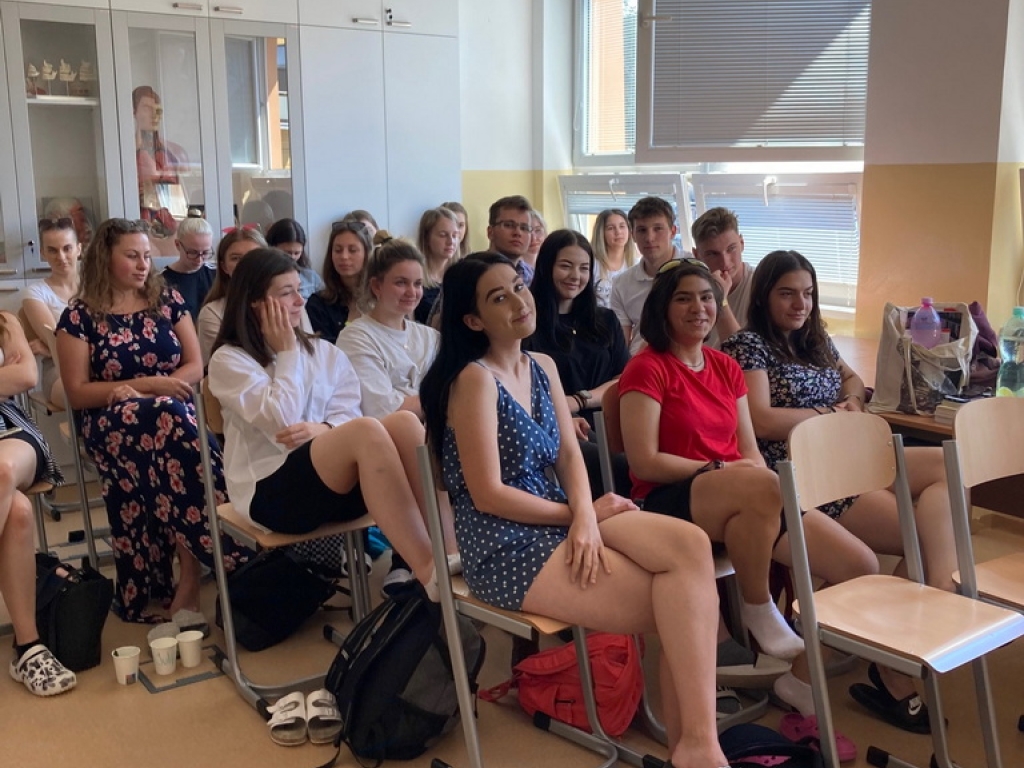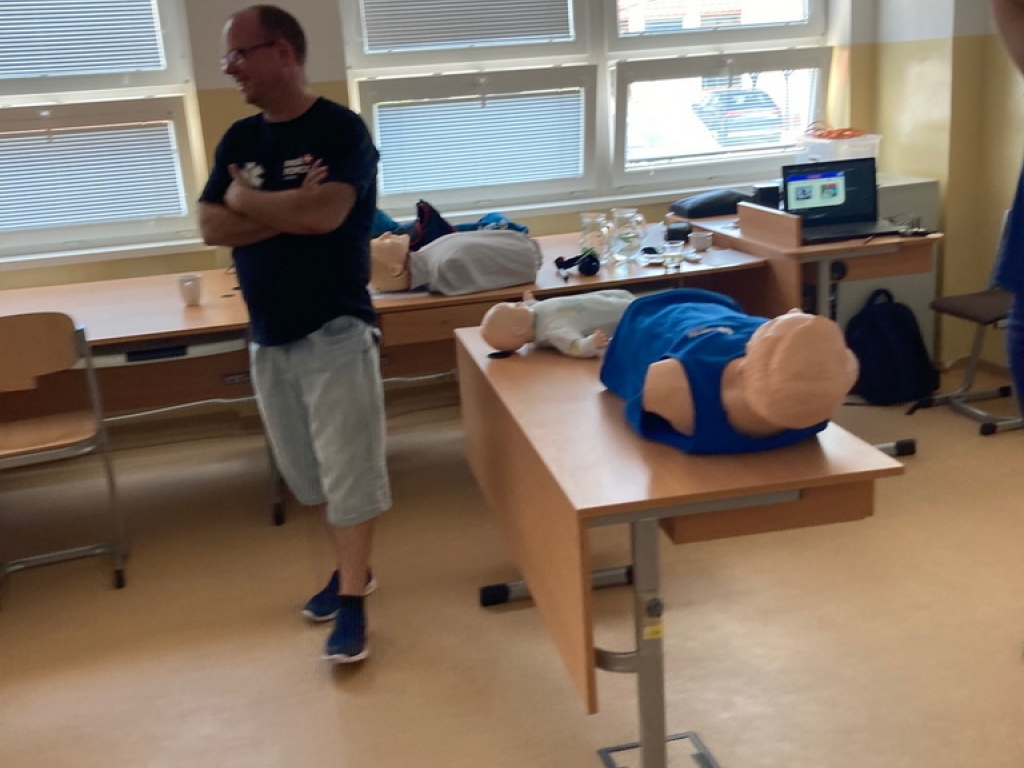 V pondelok 27.6.2022 sme v škole absolvovali preškolenie v prvej pomoci. Medzi nás prišli dvaja profesionálni záchranári Mirka Pištejová a Dušan Kraus z Prešova . Je fajn si zopakovať niektoré vedomosti a pridať k tomu novinky. Preškolenia sa zúčastnili obidve tretiacke triedy a aj učitelia a niektorí hospodárski pracovníci. Určite mi dáte za pravdu, že počúvať profesionálov je niečo iné , oveľa pútavejšie a zaujímavejšie. Sú to ľudia, ktorí sa stretávajú s poskytovaním profesionálnej pomoci každodenne a zároveň sú ochotní podeliť sa so svojimi skúsenosťami počas takýchto kurzov, či pri príprave súťaží v prvej pomoci, kde sú tvorcami úloh a porotcami zároveň.