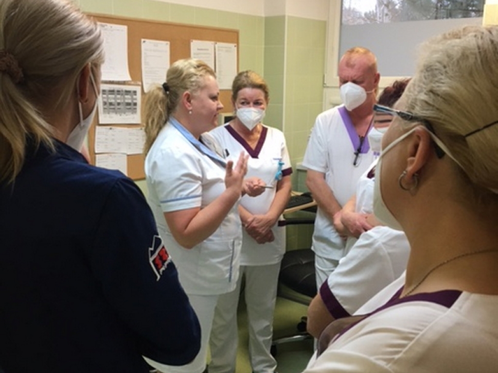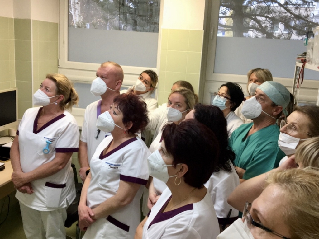 Sanitárske činnosti boli venované aj exkurzii na oddelení centrálnej sterilizácie a dekontaminácie. Oddelenie je vybavené najmodernejšou špecializovanou technikou s vysokými nárokmi na asepsu. Ďakujeme vedúcej sestre Mgr. Kataríne Jendrušákovej za zaujímavú prednášku a praktickú ukážku jednotlivých postupov na tomto oddelení.