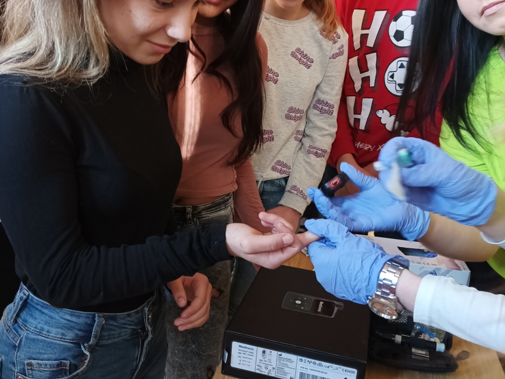 Edukačné vzdelávanie našich žiakov zo IV. B triedy - Šoltysová, Zubrická, Zemanová - pre siedmakov na ZŠ v Matejovciach s témou Cukrovka - Diabetes melitus v živote žiaka na ZŠ.