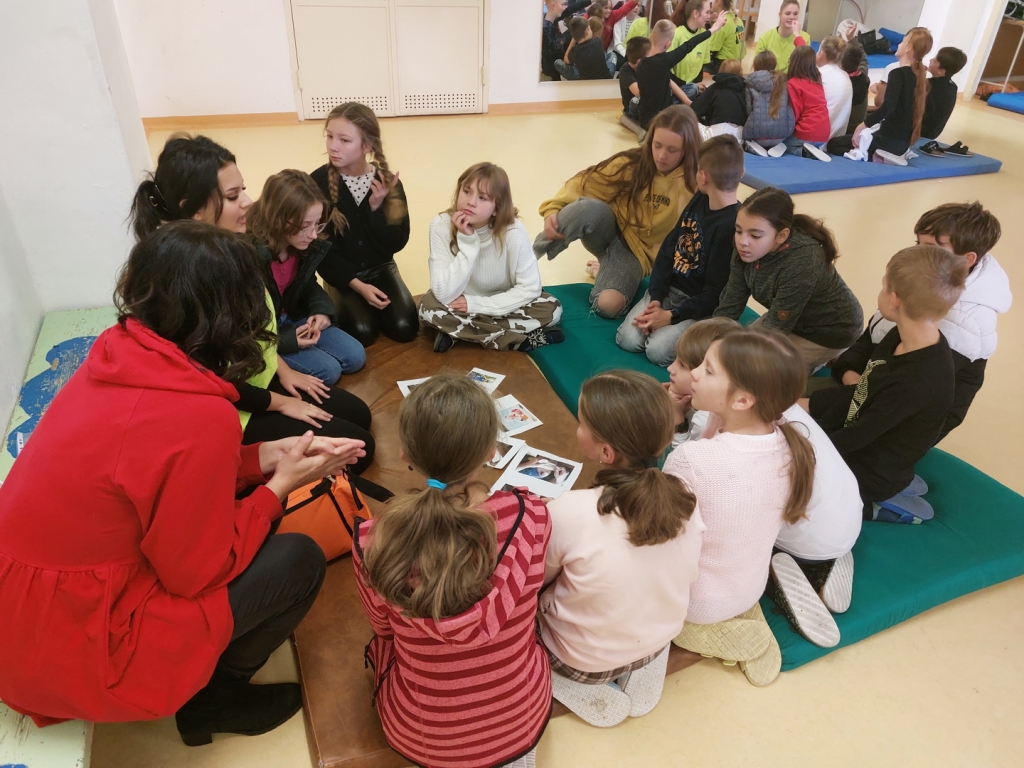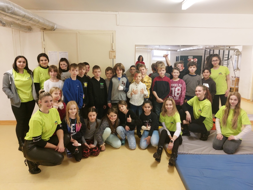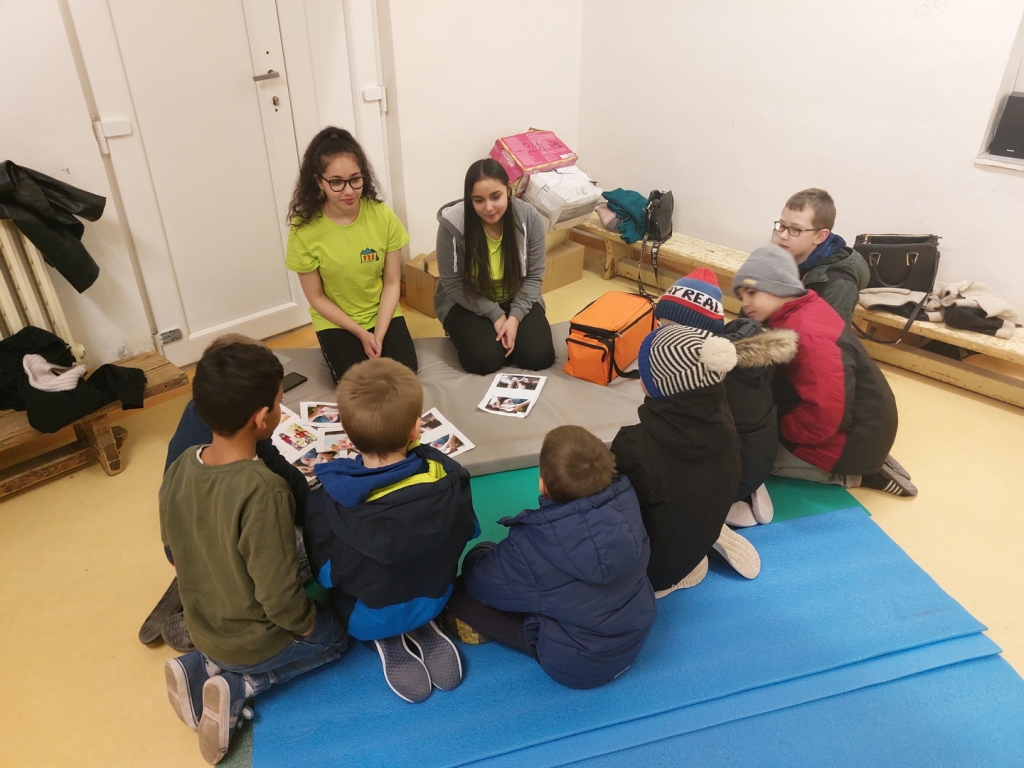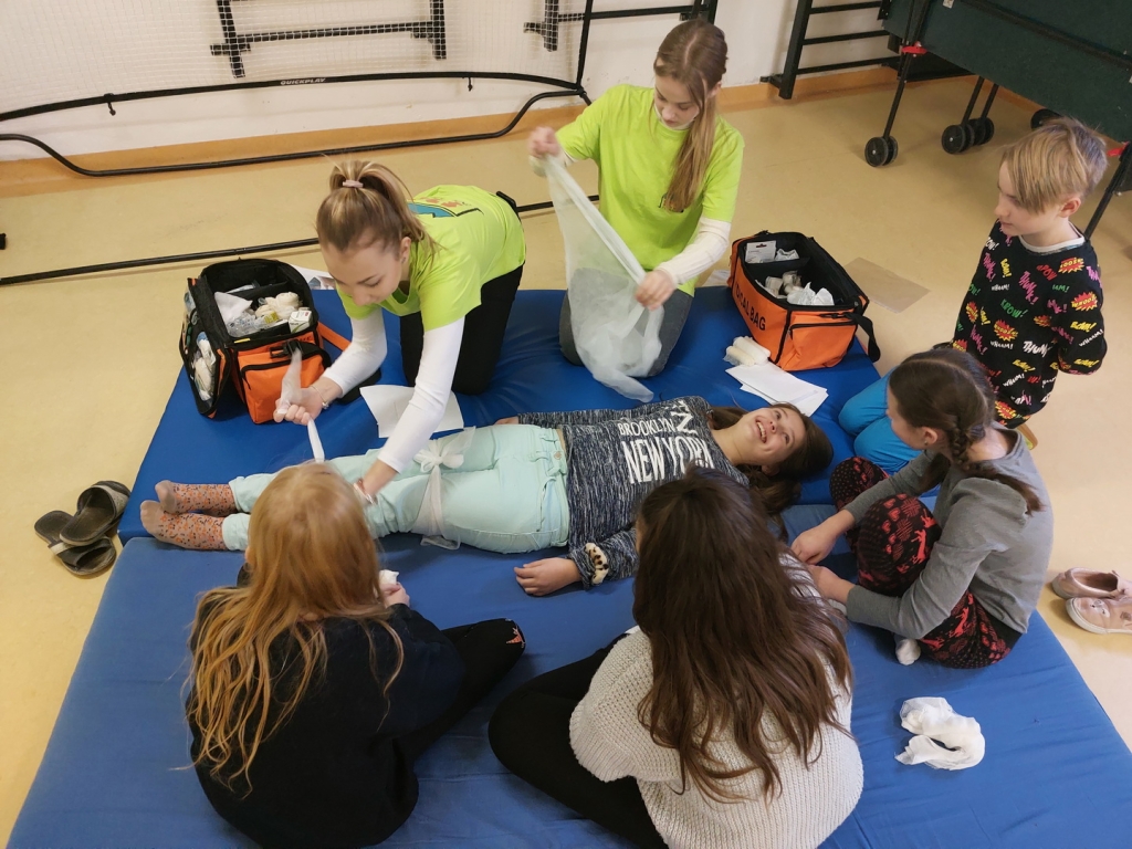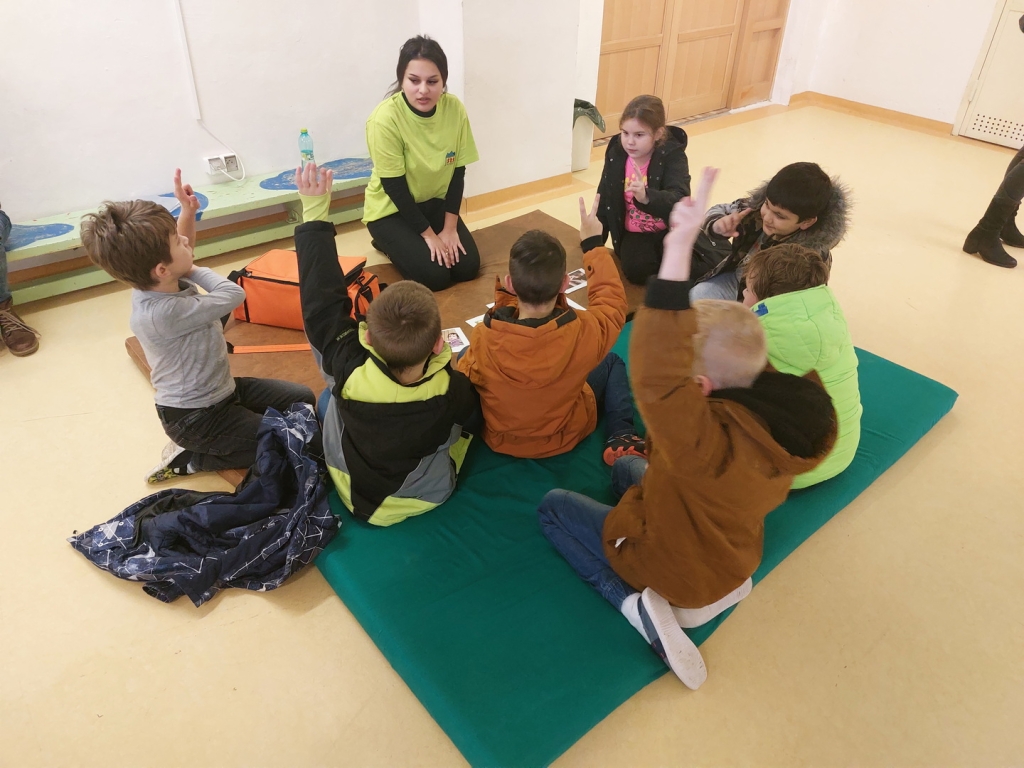 Naše dievčatá z II. A predviedli žiakom prvého stupňa v ZŠ Komenského Svit ukážky a nácvik prvej pomoci pri krvácaní, odreninách, zlomeninách a tiež ako správne privolať pomoc.