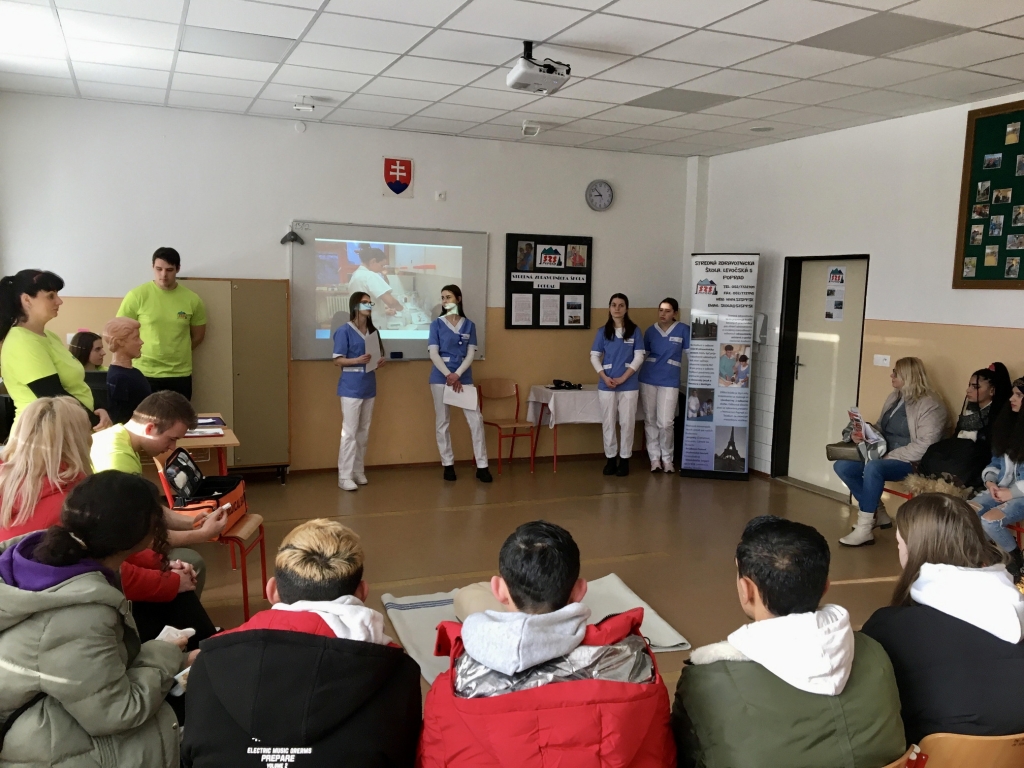 Našou úlohou bolo oboznámiť so štúdiom praktickej sestry a inšpirovať žiakov 8.a 9.ročníkov základných škôl, prečo sa rozhodnúť študovať spomínaný odbor. Porozprávali sme im o forme štúdia, kladných stránkach našej školy, rôznych školských a aj mimoškolských akciách, ktoré na našej škole organizujeme. Taktiež, sme im bližšie priblížili našu odbornú prax a ukázali sme im naše zručnosti, ktoré nadobúdame počas vyučovania prvej pomoci. Žiaci sa mohli zapojiť a vyskúšať si KPR, prvú pomoc pri dusení a taktiež maskovanie rán, či meranie krvného tlaku.