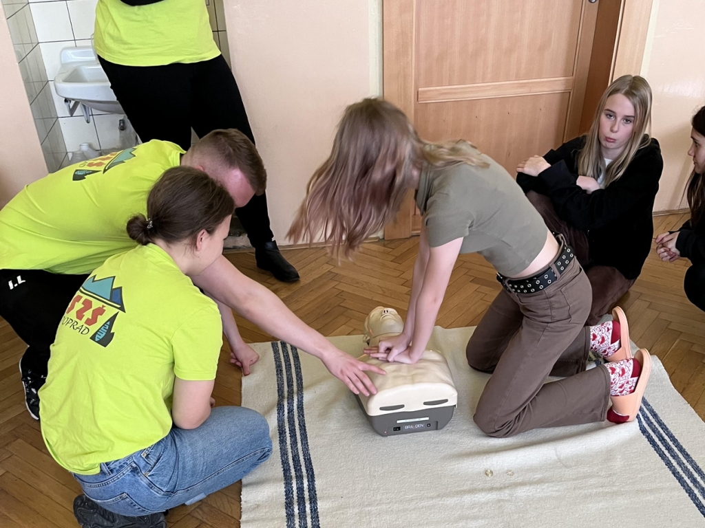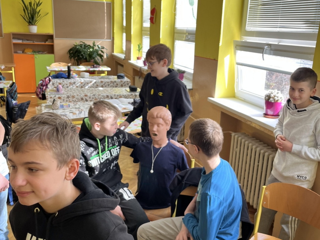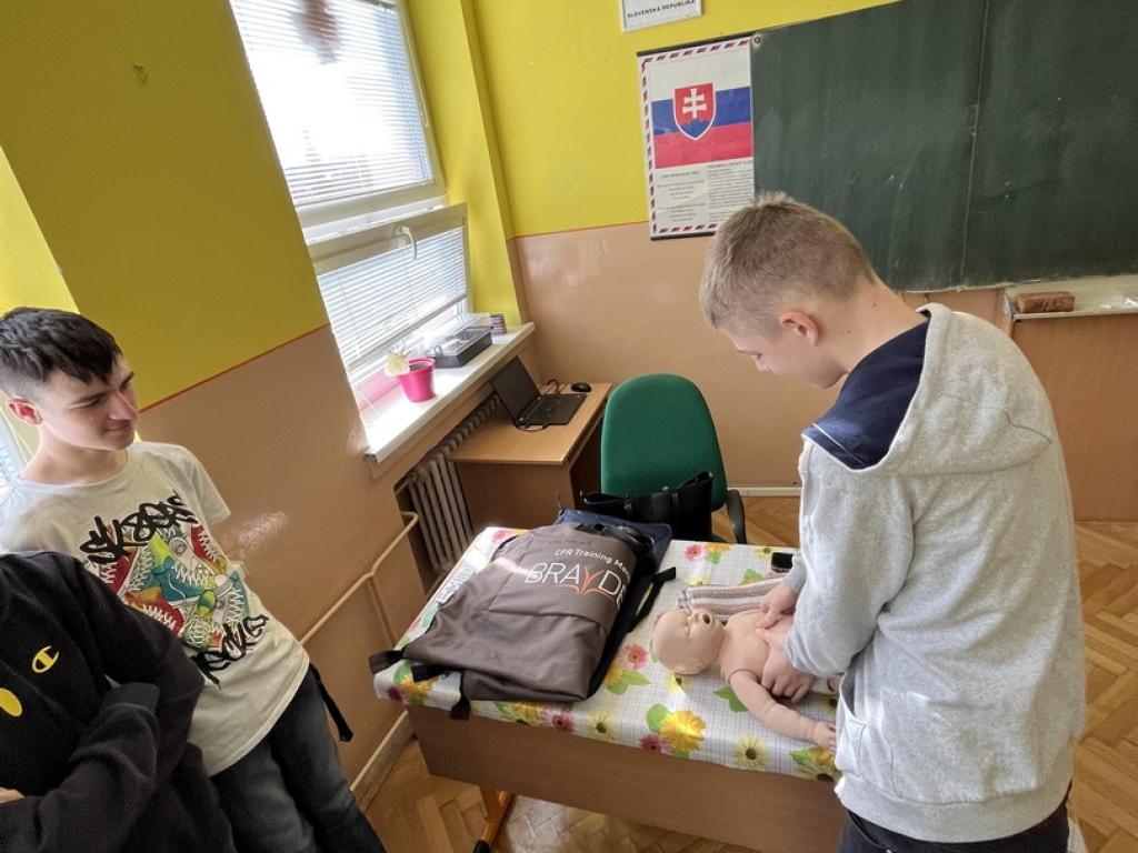 Dňa 18.04.2023 sme sa spolu s mojimi dvoma spolužiakmi z triedy 3.A a pod vedením našich učiteliek p.uč. Takáčovej a Čopíkovej vybrali vzdelávať žiakov zo základnej školy Komenského vo Svite. Našou úlohou bolo prakticky, ale aj teoreticky vysvetliť siedmakom význam KPR u dieťaťa, dospelého a taktiež prvú pomoc pri dusení. Za pomoci figurín si žiaci mohli vyskúšať aké je dôležité vedieť správne podať prvú pomoc a byť informovaní o danej problematike, s ktorou sa môžu stretnúť kdekoľvek a kedykoľvek. Na hodine biológie sa zase dozvedeli veľa nových informácií o stavbe ľudského oka a poruchách videnia. Žiaci boli šikovní, veľa sa pýtali, čo dotváralo príjemnú atmosféru. Taktiež chcem aj v mene mojich spolužiakov poďakovať za možnosť reprezentovať našu školu a vyskúšať si byť na chvíľu “učiteľmi”.