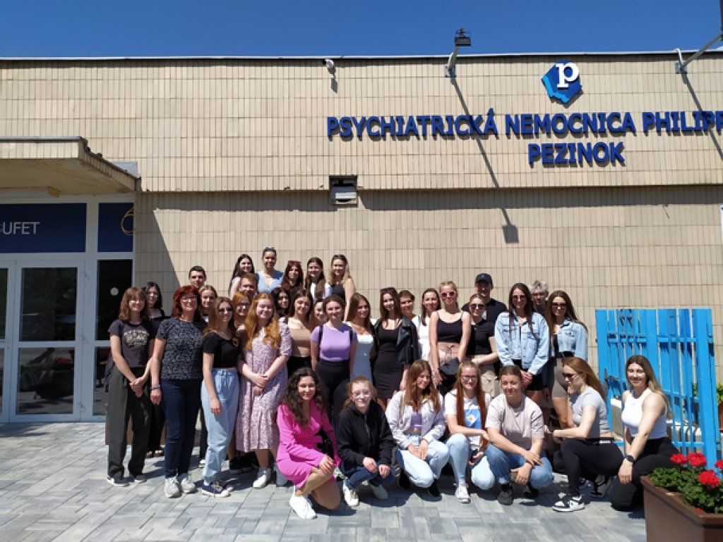 Toto moderné nemocničné zariadenie bolo cieľom odbornej exkurzie, ktorej sme sa my, 3.A, pred nástupom na mesačnú súvislú odbornú prax zúčastnili. Odbornú exkurziu, ktorej hlavným cieľom bolo prepojenie teoretických vedomostí s ich aplikáciou v praxi a v reálnej situácii, pripravila naša triedna PhDr. E. Teplická a k nej sa pripojili ešte Mgr. M. Slobodová a Mgr. J. Kurucová. Fungovanie nemocnice, jej poslanie i liečbu pacientov a v neposlednom rade i požiadavky na zamestnanca nám vysvetlila PhDr. Andrea Uhláriková, MPH, MHA, námestníčka pre ošetrovateľstvo, ktorá v spomínanej nemocnici pracuje viac ako 20 rokov a je tam spokojná a šťastná. Dozvedeli sme sa, že nemocnica má 6 klinických pracovísk – mužské a ženské oddelenie psychaitrickej kliniky, gerontopsychiatrickú, psychosomatickú a neoropsychiatrickú kliniku, i kliniku drogových závislostí. Okrem toho sa na tomto pracovisku vykonáva ústavná súdnopsychitrická znalecká expertíza. Pani Uhláriková nám poukazovala jednotlivé oddelenia, vysvetlila nám prácu na jednotlivých klinikách, dokonca sme sa dostali aj na uzavreté oddelenie, na ktorom sa liečia pacienti s najťažšími diagnózami. V rozsiahlom areáli vládla pozitívna a pokojná atmosféra, priateľská klíma, a to v nás vyvolávalo pocity harmónie. Naša príjemná sprievodkyňa nám zdôrazňovala potrebu starať sa o vlastné duševné zdravie i priateľské medziľudské vzťahy. Najviac nás však zaujalo jej vyhlásenie, aby sme sa vždy ku každému pacientovi správali s rešpektom a empatiou, pretože nikdy nevieme, kedy sa v pozícii pacienta ocitneme.