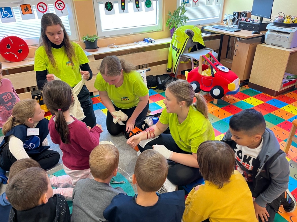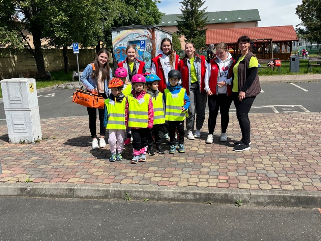 Dňa 13.6.2023 sa žiačky/3.A – Čižíková, Neupauerová,Orolínová, M.Majerčáková, D. Baková – 1.B/ našej školy pod vedením p. uč. Takáčovej zúčastnili súťaže dopravnej výchovy pre Materské školy okresu Poprad, ktorú organizovala MŠ Komenského. Našou úlohou bolo ukázať budúcim prváčikom základy prvej pomoci pri bezvedomí, KPR u dieťaťa a dospelého a taktiež ako ošetriť odreninu či tepnové krvácanie pri páde z bicykla alebo kolobežky. Škôlkari boli veľmi šikovní a hravou formou všetko zvládli. Na tejto akcii sme sa zúčastnili nielen ako budúci profesionálni zdravotníci, ale aj ako zdravotnícky dozor pre predškolákov na dopravnom ihrisku. Bystré a zvedavé deti dotvárali príjemnú atmosféru a my sme boli radi, že sme znova mohli byť niekde užitoční a naučiť deti MŠ niečo nové.