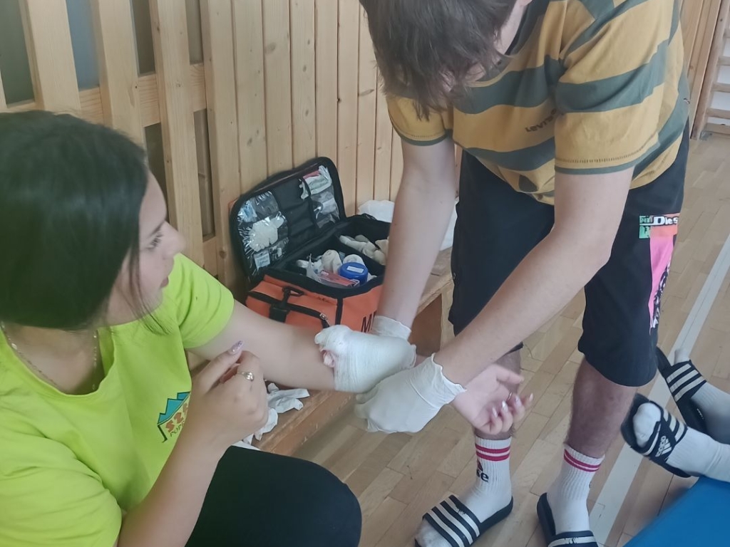 Dňa 19.6. 2023 sa žiačky Natália, Marianna, Žaneta, Miška, Timea z 2. PS A a žiačka Dominika z 1. PS B triedy učili žiakou Strednej priemyselnej školy techniky a dizajnu v Poprade základy prvej pomoci. Žiaci ale aj učitelia boli veľmi milí a spolupracovali z našimi dievčatami.