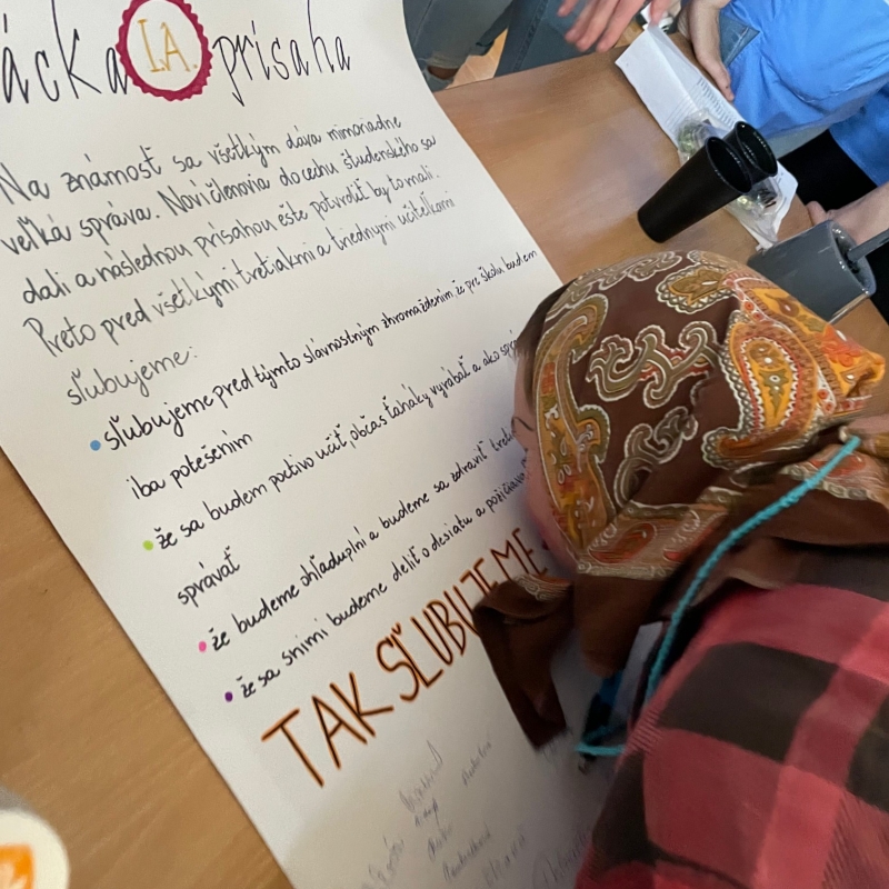 V utorok 24.10. 2023 sa našej škole uskutočnili imatrikulácie našich prvákov. Žiaci 3. ročníkov si pre nich opäť pripravili zaujímavý program Privítanie prvákov je už všetkým známe, zas sa to neobišlo bez poškodenej tváre. Rúž, vajcia, šľahačka to je ono, bez toho neodišli domov.