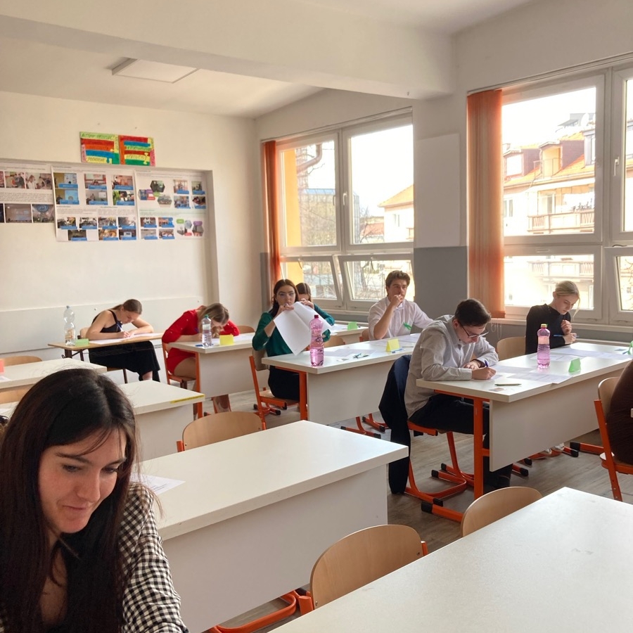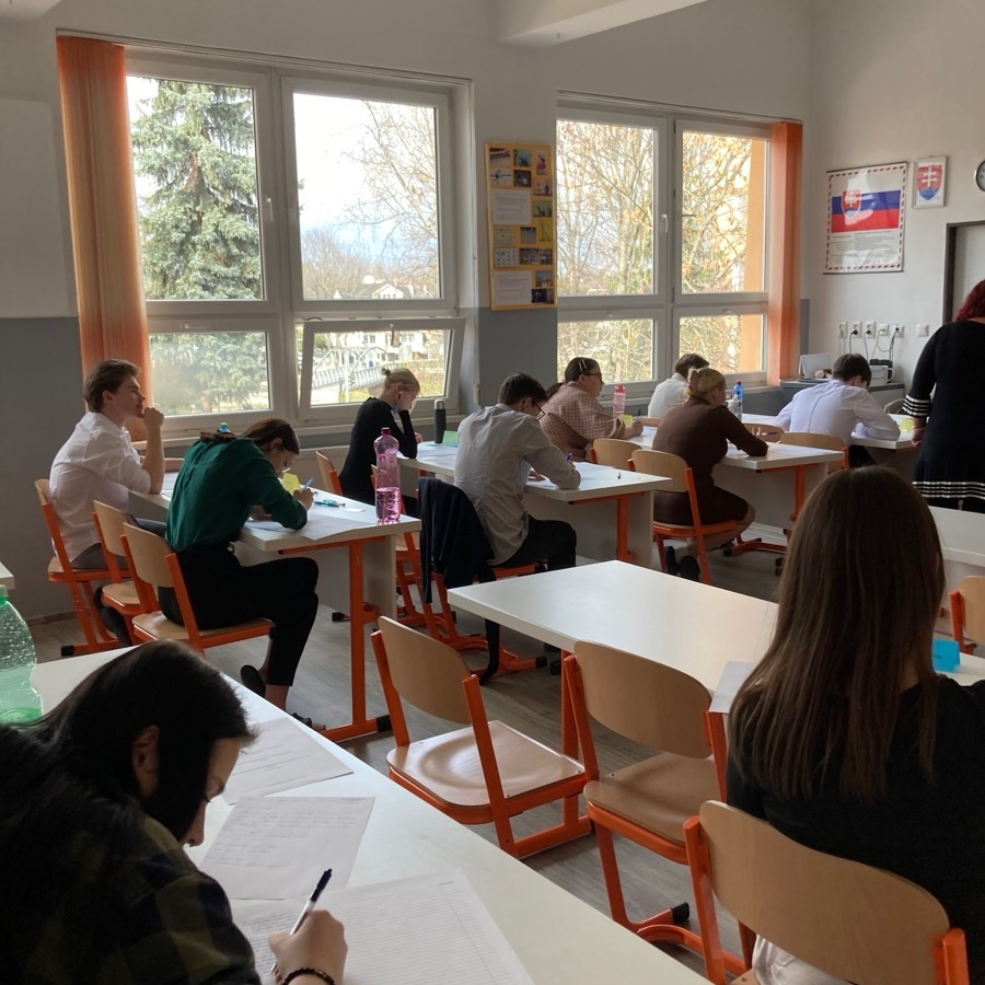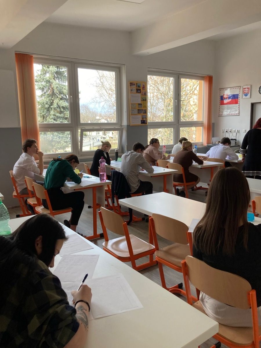 Tak to máme za sebou. V dňoch 12. a 13. 3.2024 naši maturanti konali prvú časť maturitnej skúšky a to externú časť a písomnú formu internej časť MS. Popasovali sa s externými testami zo slovenského jazyka a literatúry a poobede si zo 4 tém volili jednu .Väčšina našich študentov si volila tému číslo 2 a 3, čiže rozprávanie na tému „Vtedy som si pripadal/a ako v počítačovej hre.“ alebo úvahu „Dobro a zlo sú v každom človeku, voľba je však na tebe...“ V stredu maturanti písali písomnú časť z cudzích jazykov- nemeckého a anglického. V porovnaní s utorkom pribudlo bielych a zelených tvárí. Predsa len si asi z cudzích jazykov verili menej. Z anglického jazyka písalo úroveň testov B1 49 študentov a 4 študentky si trúfli na vyššiu úroveňB2, čo nás samozrejme teší. Z nemeckého jazyka všetkých 8 študentov písalo úroveň testov B1. Veríme, že uspeli a budú všetci pokračovať v ďalších dvoch častiach maturitnej skúšky a to praktickej a ústnej. Tak Vám držíme všetkým palce , milí maturanti a veríme, že pre Vás maturita naozaj nebude len formalita a ukážete, čo vo Vás je.