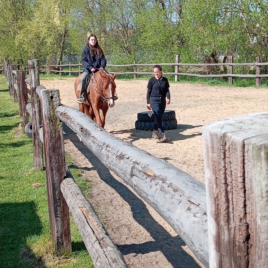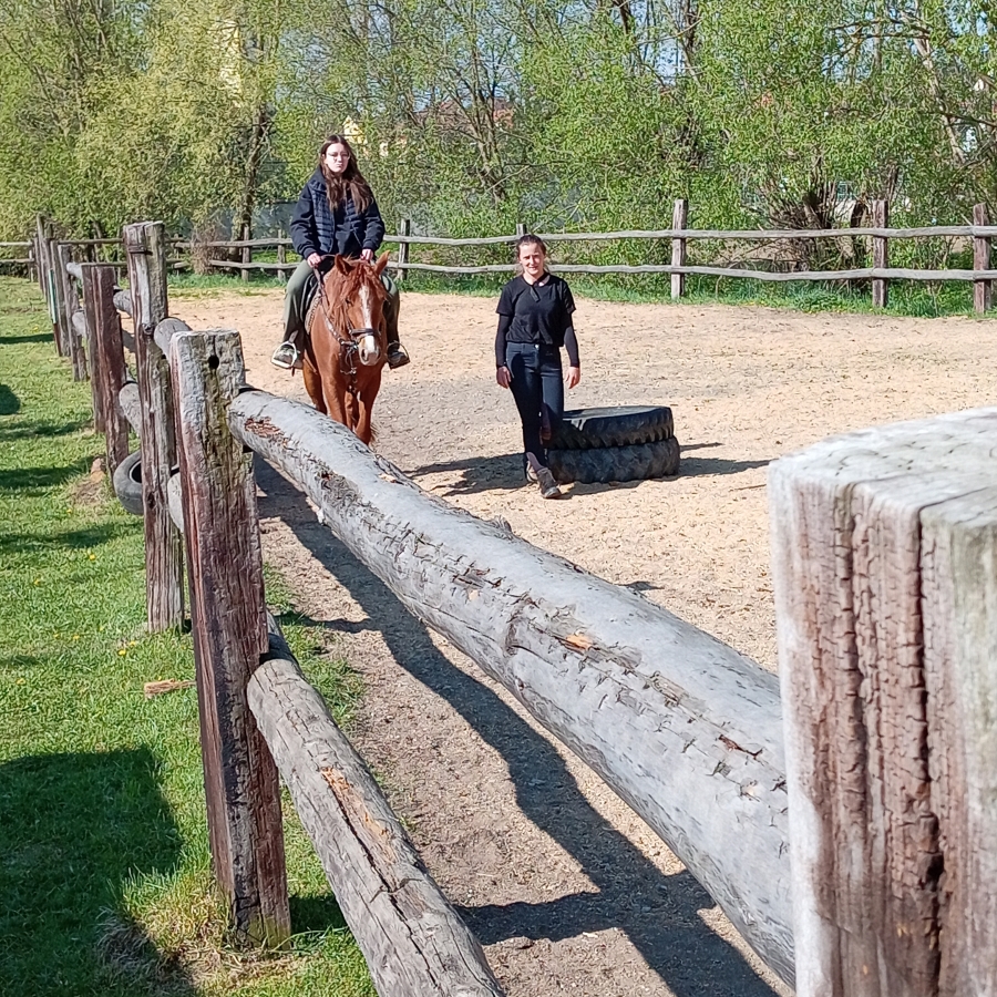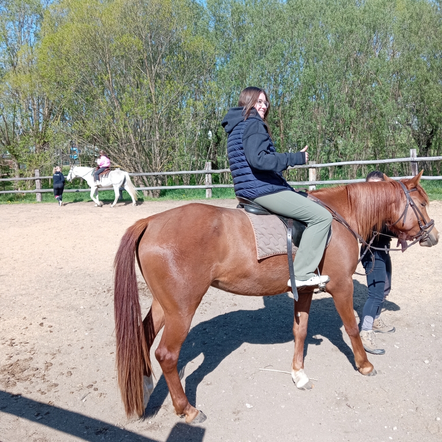 V ďalšej časti exkurzie žiaci spoznávali exteriéry zariadenia, kde veľkým bonusom bola možnosť jazdy na koni a sledovanie najmenších zvieracích prírastkov.