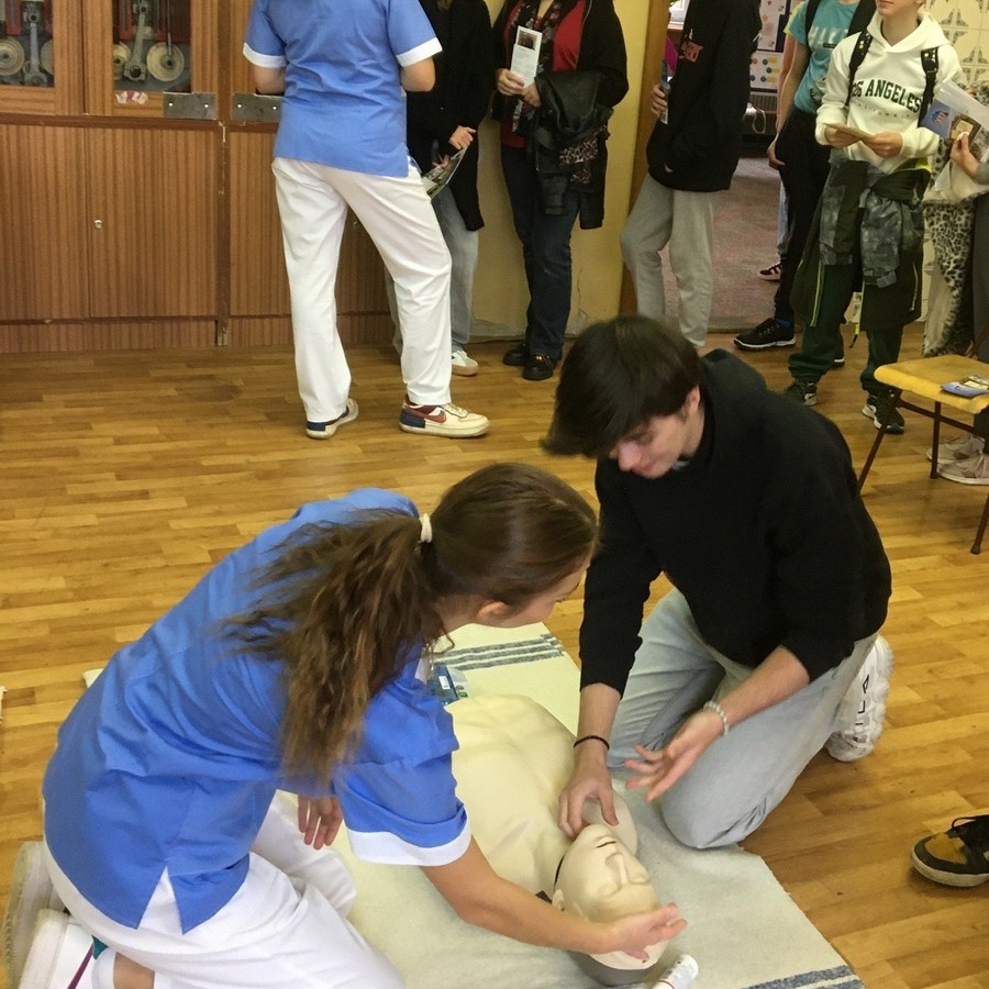 Našou úlohou bolo oboznámiť žiakov 9.ročníkov základných škôl a ich rodičov so štúdiom odboru praktická sestra a inšpirovať ich k rozhodnutiu študovať spomínaný odbor. Porozprávali sme im o forme štúdia, kladných stránkach našej školy, rôznych školských a aj mimoškolských akciách, ktoré na našej škole organizujeme. Taktiež sme im bližšie priblížili odbornú prax a ukázali sme im naše zručnosti, ktoré nadobúdame počas vyučovania prvej pomoci. Žiaci sa mohli zapojiť a vyskúšať si KPR, prvú pomoc pri dusení a maskovanie rán či meranie krvného tlaku a hladiny cukru v krvi.