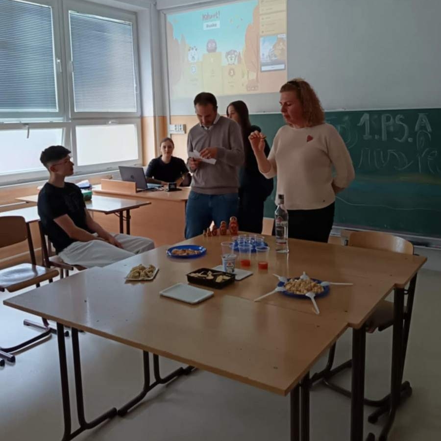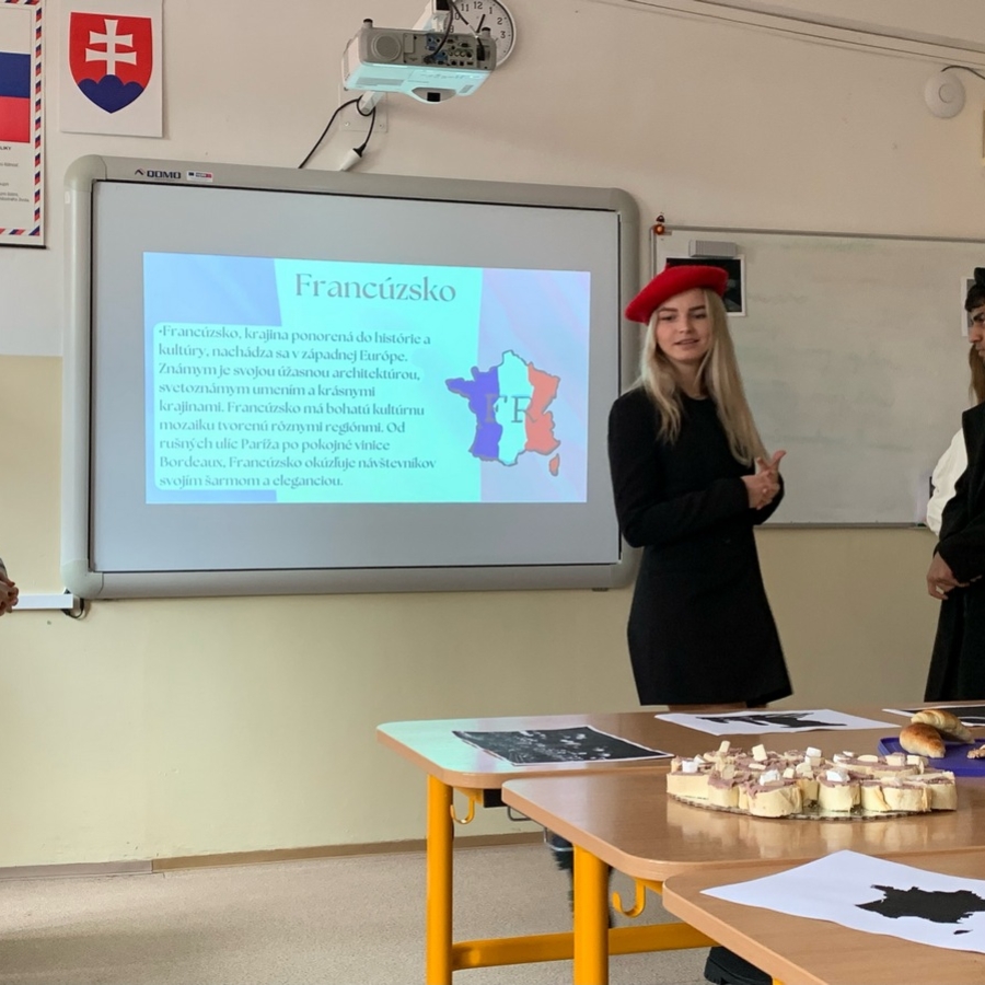 Napriek tomu, že sme v prvom rade zdravotníci, uvedomujeme si, že v súčasnosti je potrebné ovládať aj nejaký cudzí jazyk. Preto sme si 2.10.2024 pripomenuli Deň jazykov zaujímavými akciami. Každá trieda si vybrala krajinu, ktorú prezentovala netradičnou formou – prezentácie, kvízy, ochutnávka tradičných jedál. Ako štvrtáci sme objavovali čaro krajiny „galského kohúta“. Veľa sme sa o tejto zaujímavej krajine naučili a hoci je Francúzsko známe konzumáciou žiab, tie sme tento raz vynechali. Druháci nám predstavili Japonsko, krajinu „vychádzajúceho slnka“ a svoj výklad doplnili ochutnávkou typickej japonskej špeciality sushi. V tajnom hlasovaní, ktorého sa zúčastnili všetci žiaci i učitelia, bolo rozhodnuté, že víťaznou triedou sa stala 3. B, ktorá prezentovala Španielsko. Tu nás zaujala najmä slovná zásoba tohto románskeho jazyka. Všetci sme si užili hodiny plné zábavy. Táto tradícia sa na našej škole uskutočňuje každoročne, pretože sa vzdelávame aj v inej oblasti, ako je naše milované zdravotníctvo.