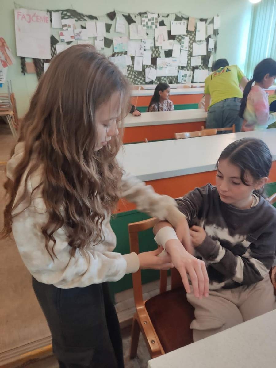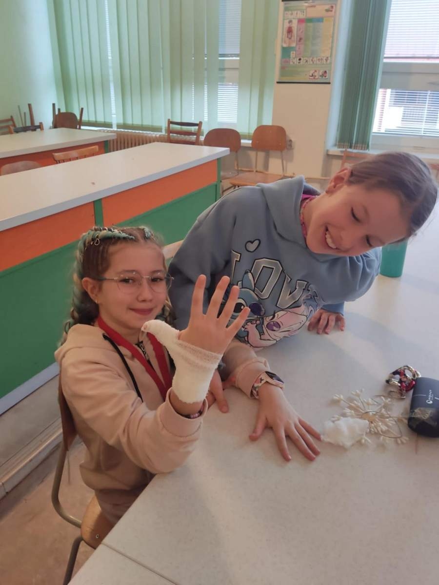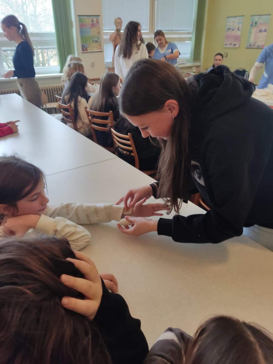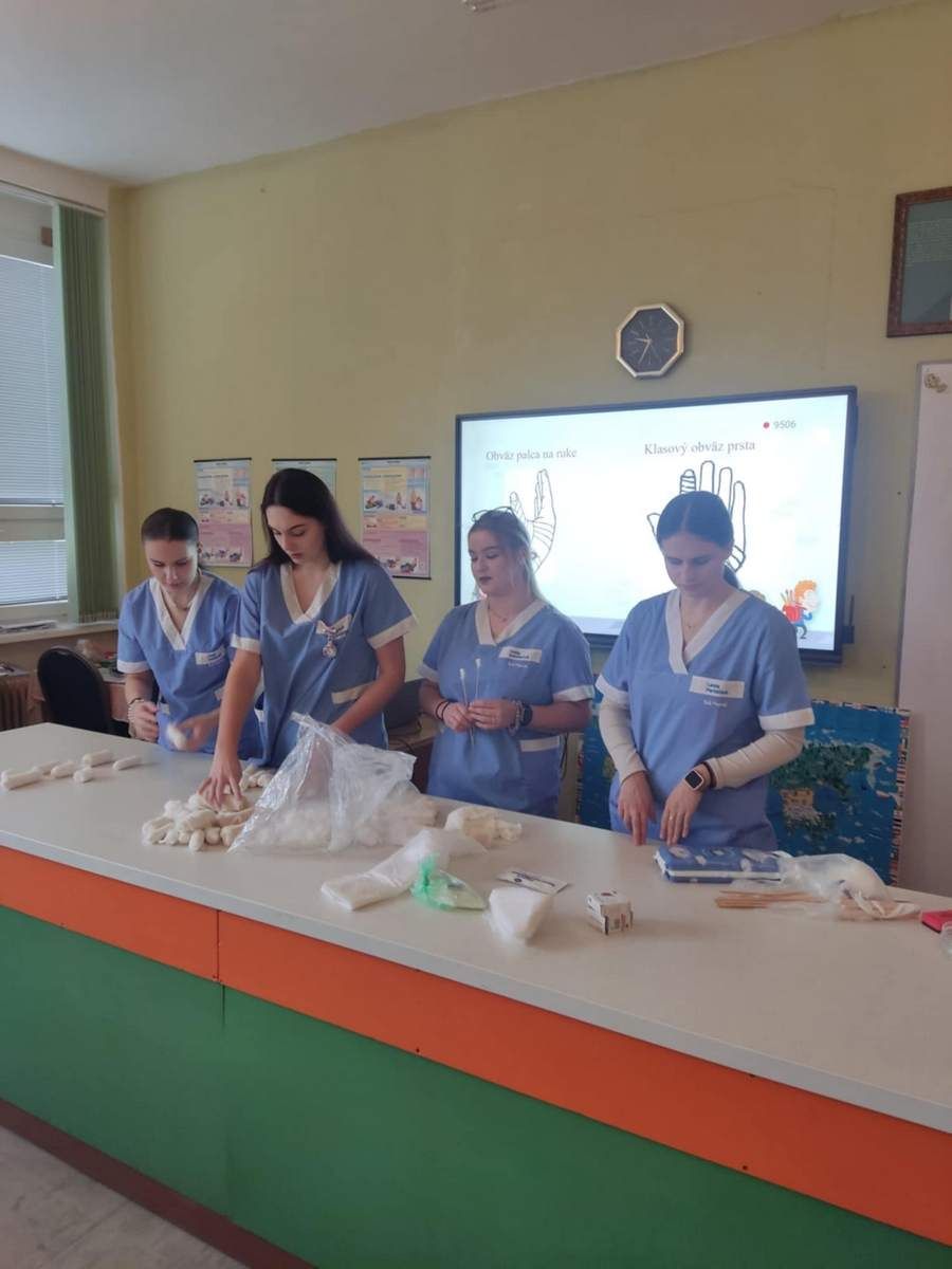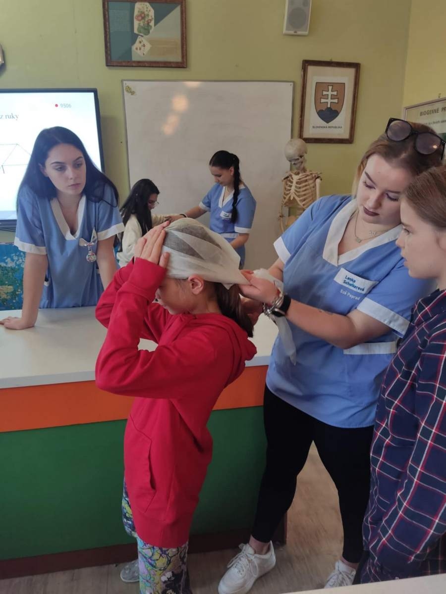 9.12.2024 som sa vrátila do svojich školských čias, opäť som prekročila brány Základnej školy v Dolnom Smokovci. Za aktívnej účasti 10 žiakov našej školy, budúcich zdravotníkov, sme žiakov ZŠ učili o obväzoch. Okrem spomienok, ktoré sa mi vyrojili, sa naša pozornosť upriamila na obväzovú techniku a náš zámer v takom malom rýchlokurze odovzdať poznatky štvrtákom a piatakom na spomínanej základnej škole.