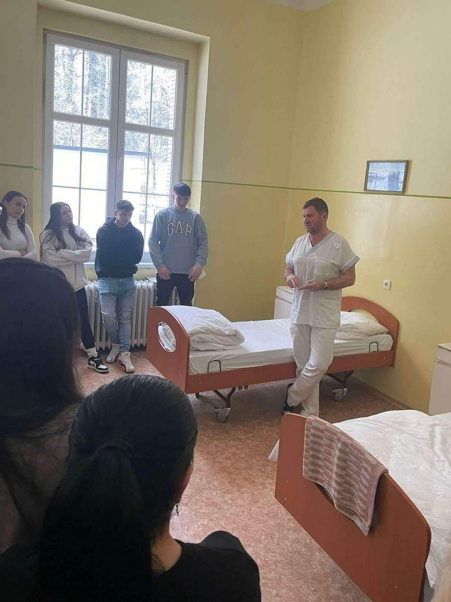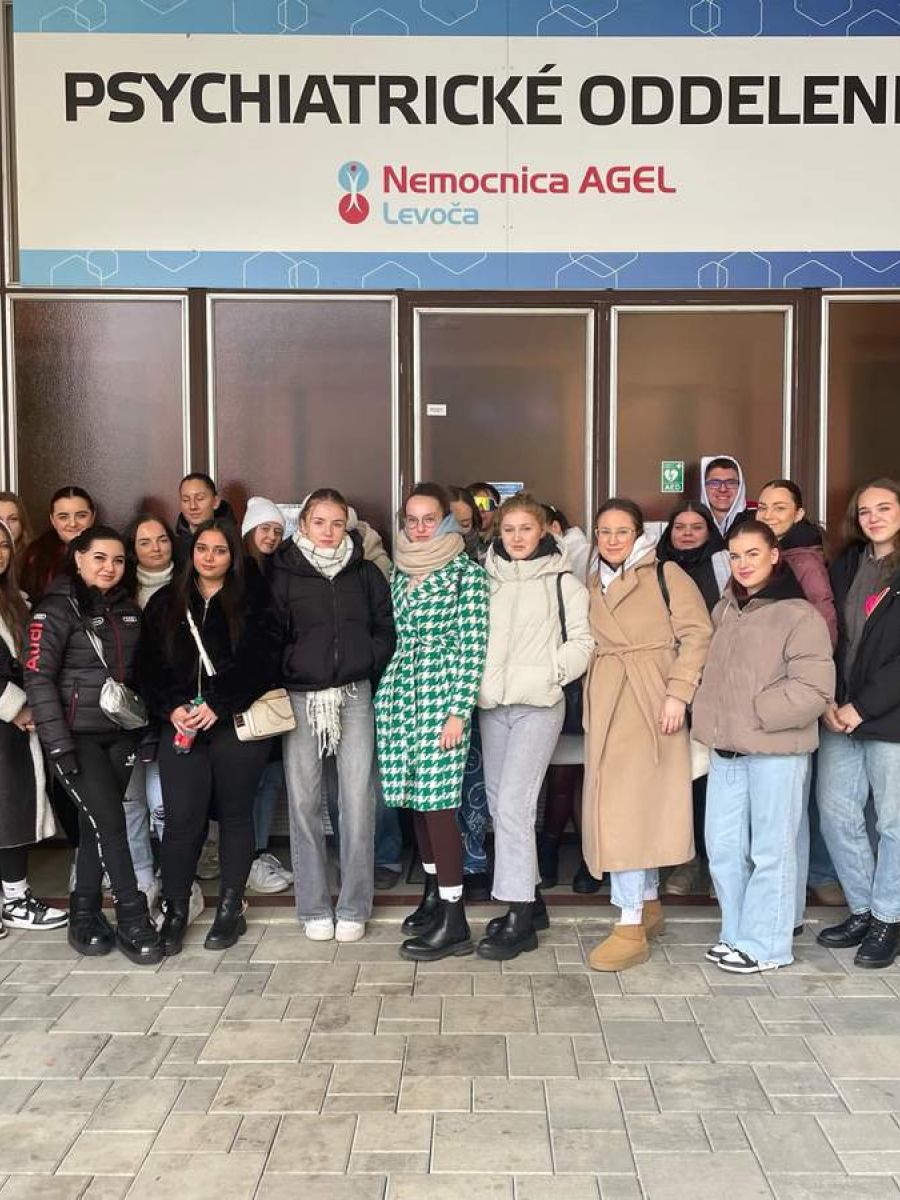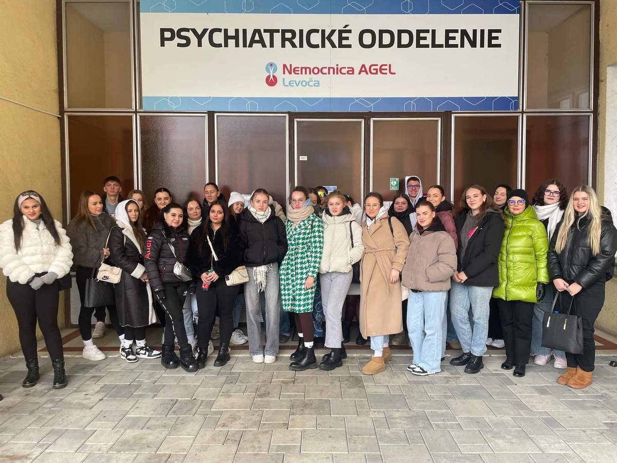Radi by sme sa poďakovali pánovi Slavomírovi Čujovi, dipl. s., ktorý je vedúcou sestrou psychiatrického oddelenia Nemocnice AGEL Levoča a celému personálu, ktorí nás 21. januára 2025 srdečne privítali s otvorenou náručou a úsmevom na tvári. Ukázali nám celé oddelenie, podrobne nám vysvetlili jednotlivé úseky a odpovedali na naše zvedavé otázky. Pán Čuj sa s nami podelil o svoje bohaté skúsenosti z dlhoročnej práce v oblasti psychiatrie, čo nám poskytlo cenný pohľad na náročnosť tejto profesie. Mali sme jedinečnú príležitosť vidieť pacientov, ktorí zápasia s psychickými problémami, a týmto zážitkom sme si uvedomili, že práca v takomto oddelení nemusí byť vždy len náročná, ale aj napĺňajúca, keďže personál si zachováva pozitívny prístup a úsmev na tvári aj v tých najťažších chvíľach. Ešte raz ďakujeme za skvelú príležitosť a za všetko, čo sme sa počas exkurzie naučili.