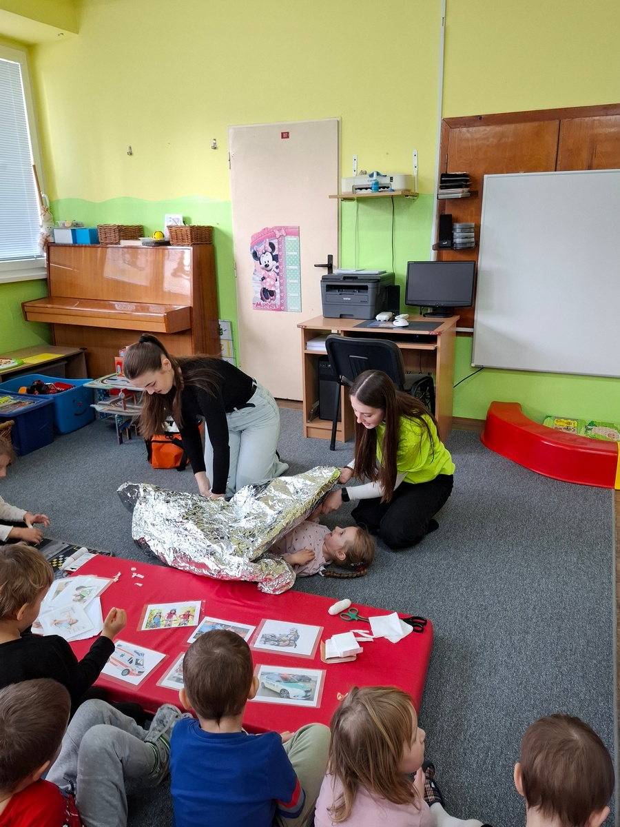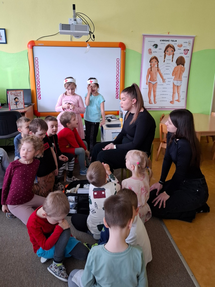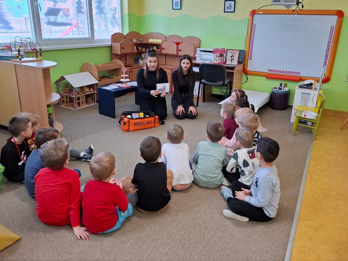 Dnešný deň 7.2.2025 bol pre nás výnimočný, akoby sme sa vrátili v čase. 9 našich žiačok z 2.B a 3.B triedy boli navštíviť malých drobcov v MŠ Mládeže 2, ktorým sprostredkovali prvý kontakt s ošetrením drobných rán. Deťom sa to veľmi páčilo a nám tiež.