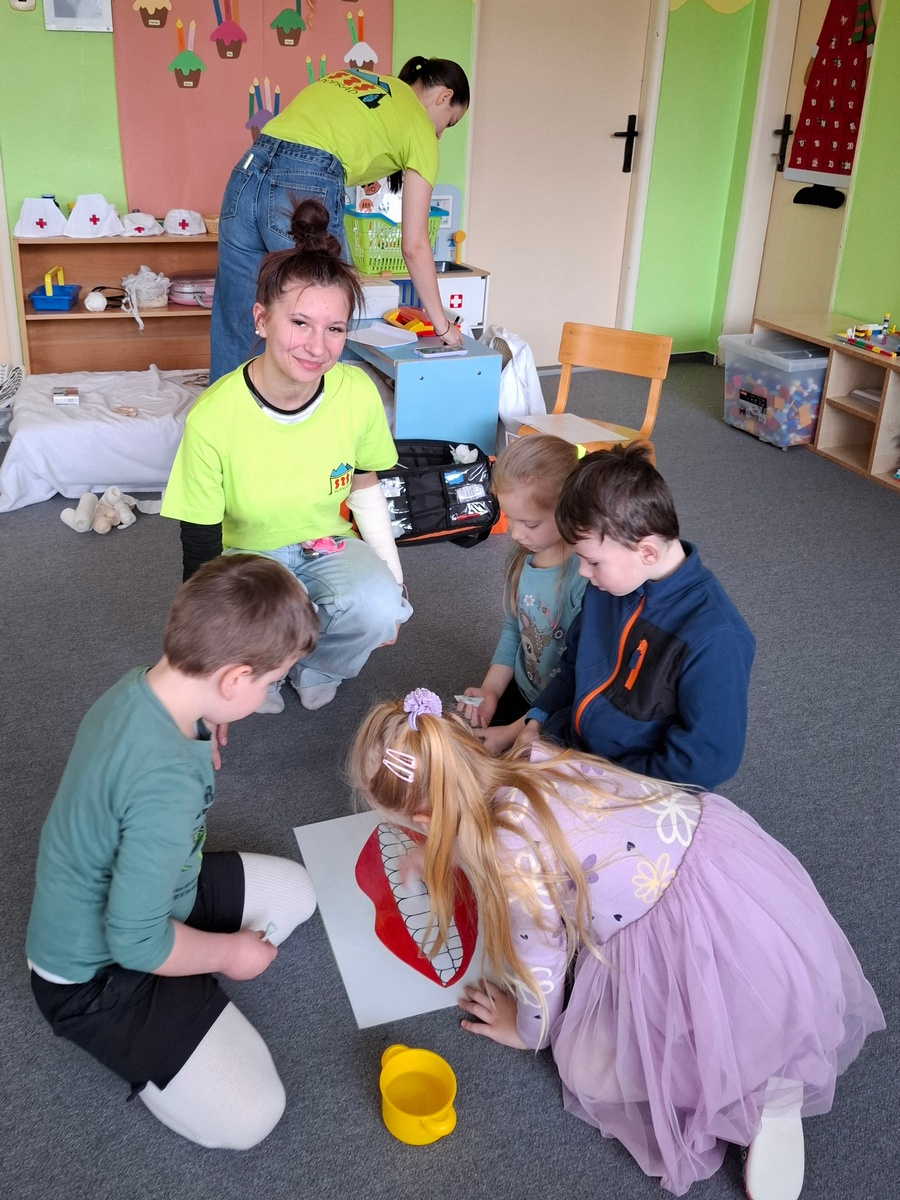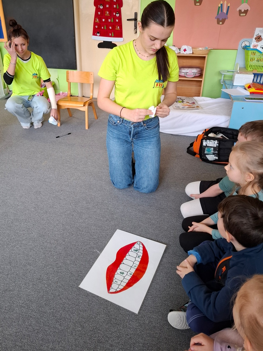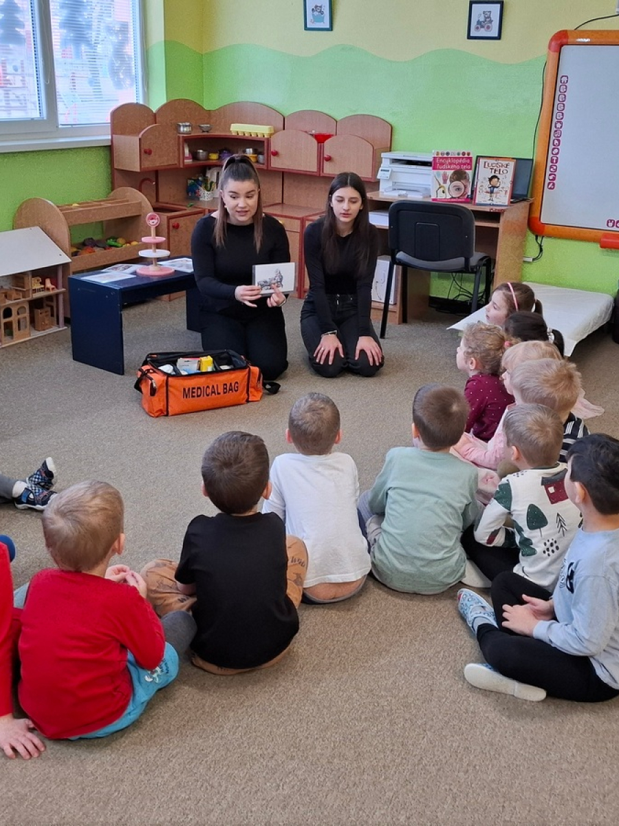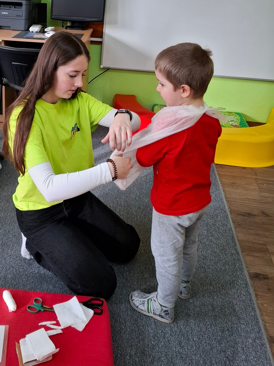 Dnešný deň 7.2.2025 bol pre nás výnimočný, akoby sme sa vrátili v čase. 9 našich žiačok z 2.B a 3.B triedy boli navštíviť malých drobcov v MŠ Mládeže 2, ktorým sprostredkovali prvý kontakt s ošetrením drobných rán. Deťom sa to veľmi páčilo a nám tiež.