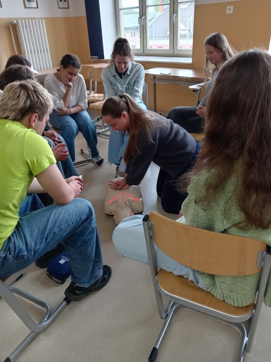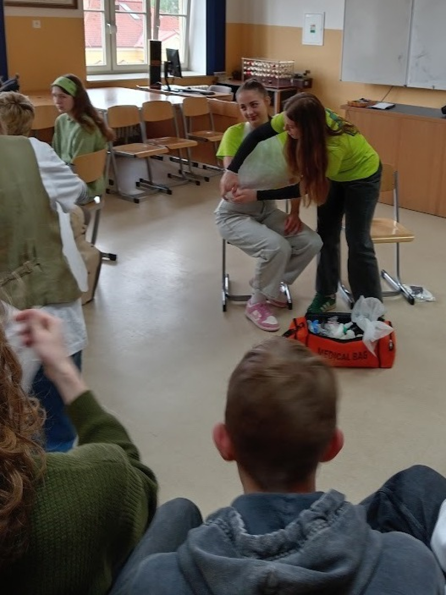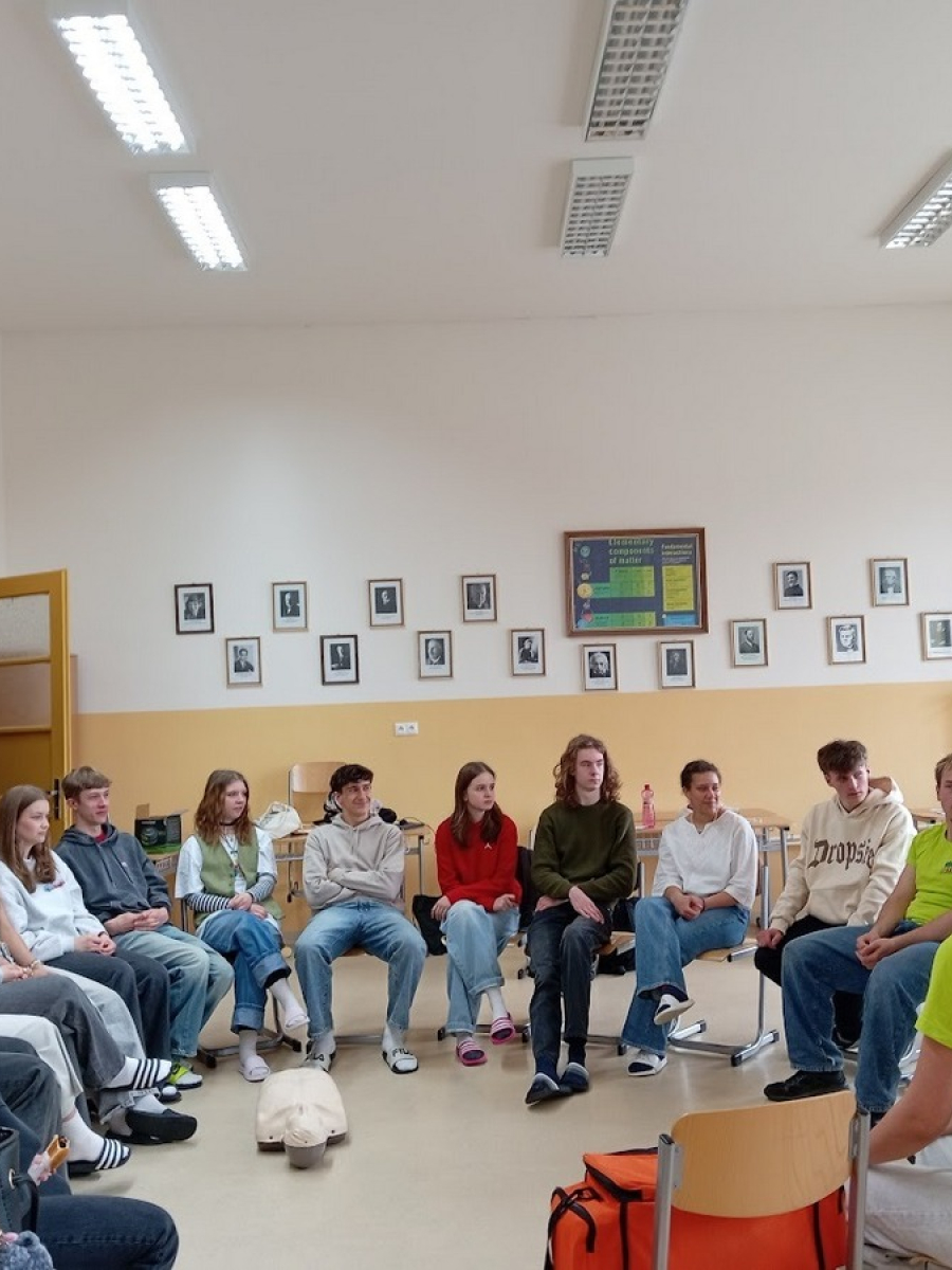 5. mája 2025 žiaci našej školy, Lucia Čechová, Natália Bartošová, Gorka Oroza Macko a Jakub Šuták, realizovali školenie prvej pomoci pre 18 účastníkov programu DofE na Gymnáziu Školská 7 v Spišskej Novej Vsi. Školenie bolo vykonané z dôvodu zabezpečenia správnej pripravenosti a schopnosti pomôcť v prípade núdzovej situácie počas expedície.