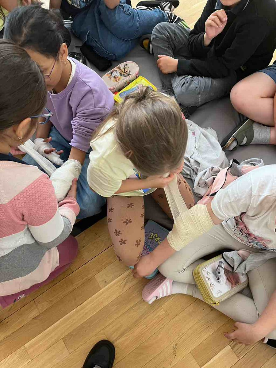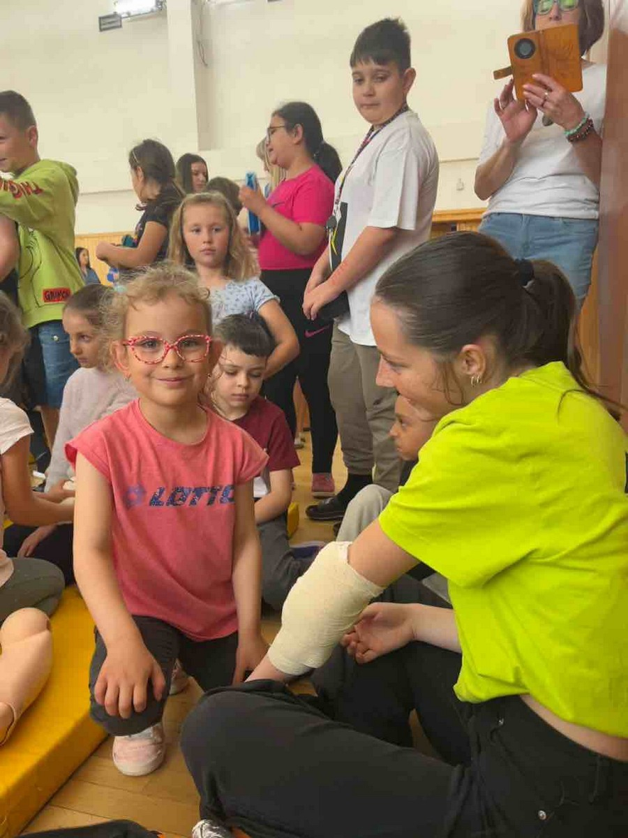 V utorok 03.06.2025 navštívili Simona Blahová, Dorota Lukačková, Alica Pavlíková a Michaela Hegedüšová základnú školu vo Važci. Poučili žiakov prvého stupňa o prvej pomoci pri rôznych život ohrozujúcich stavoch. Prešli si s nimi tiesňové čísla a ukázali im masáž srdca, Gordonove údery či Heimlichov manéver pri dusení sa, zastavenie krvácania a fixovanie zlomeniny trojrohými šatkami. Deti si mohli získané vedomosti vyskúšať na figurínach, následne mali pripravenú súťaž prvej pomoci v družstvách na modelových situáciách, ktorú si pripravila ich škola a naše žiačky im obodovali postup na jednotlivých stanovištiach.