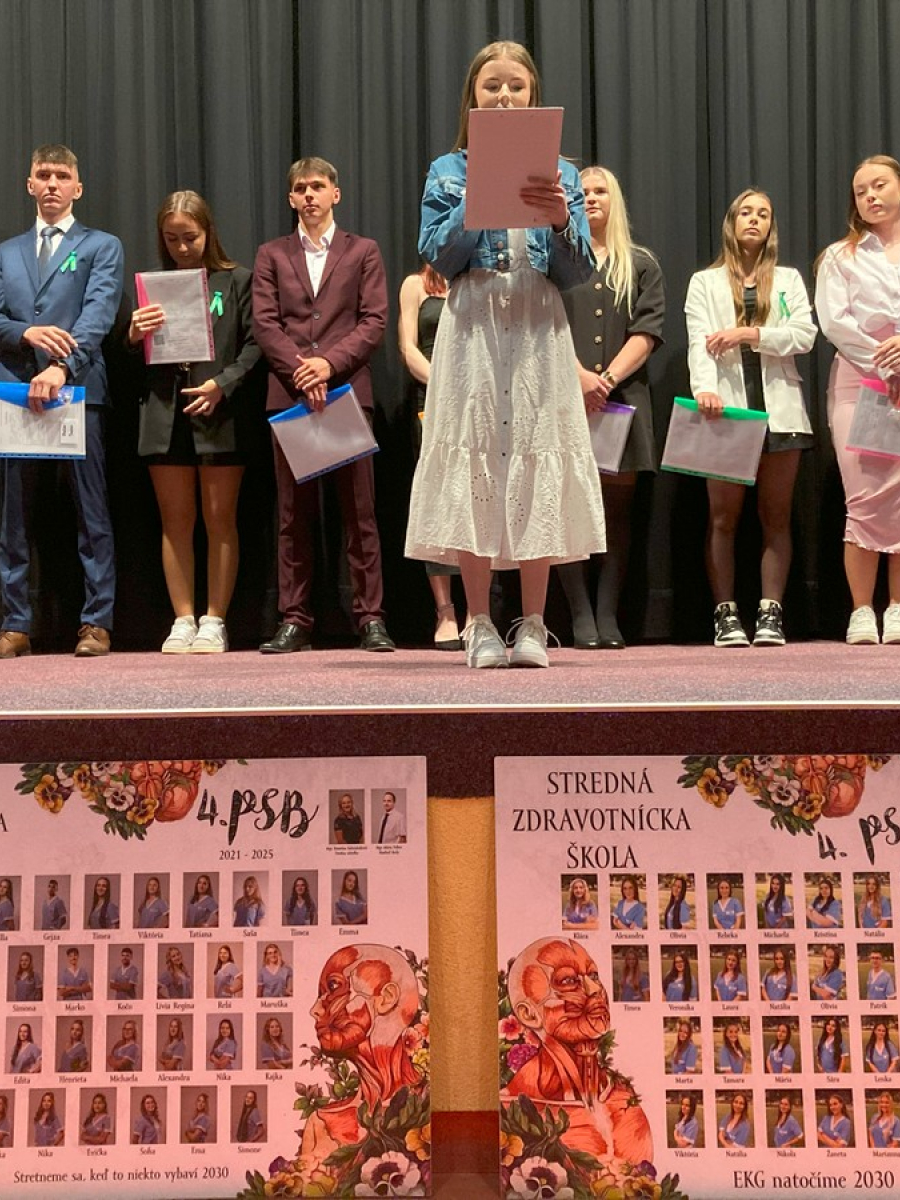 Život nie je iba o počte nadýchnutí, ale o chvíľach, ktoré berú dych, o okamihoch, z ktorých sa v mysli utkáva pavučina spomienok, spomienok na pády i výhry, sklamania i úspechy, spoznávanie i lúčenie. Všetky tieto slová by sa dali nahradiť snáď jediným krátkym slovom – škola. Čo je škola? Je to iba 5 náhodne pospájaných písmen? Vo výkladovom slovníku sa píše, že je to budova a výchovno-vzdelávacia inštitúcia. No pre nás slovo škola označuje samostatnú kapitolu v knihe života. 10. jún 2025 bol pre nás všetkých neobyčajným dňom, pretože sme do sveta dospelých vyprevadili našich úspešných absolventov. Je to koniec či začiatok? Koniec bezstarostného detstva a začiatok dospeláckeho života, nová kapitola, ktorú začínajú písať naši bývalí štvrtáci, dnes už úspešní absolventi. Mesiace a roky ubiehajú, zdá sa, že neuveriteľnou rýchlosťou, ale krásna chvíľa presvetľuje celý život, pekný okamih akoby nepodliehal času. Ján Amos Komenský povedal: „ Múdry je ten, kto má nielen vedomosti, ale aj mravné vlastnosti, kto vie správne žiť.“ Preto Mgr. Mário Felber, riaditeľ školy, na základe stanovených kritérií ocenil najlepších žiakov 4. ročníkov. Ocenenie si prevzali Timea Kolodzejová zo 4. A a Eva Ščuková zo 4. B. Obe žiačky sú vzorom pre ostatných nielen pre vynikajúci prospech, ale i dochádzku a vzorné plnenie povinností či dobré šírenie mena školy. Slávnostný okamih sprevádzal bezchybný kultúrny program, o ktorý sa postarali Stelka Skokanová a Alicka Šelepová ľudovým tancom, Natália Bartošová pantomímou a Kristína Ďuricová scénickým tancom. Začiatok či koniec? Určite jedinečný okamih, ktorý z neznámych ľudí urobil priateľov, ktorých čosi spája. Na prítomnosti je príjemná činnosť, na budúcnosti nádej a na minulosti spomienky a ako povedal John Lenon: „ Vstupujeme do neznámej budúcnosti, ale stále sme ešte tu a kým sme posadnutí životom, zostáva nádej.“ Veríme, že chvíle strávené na našej „zdravotke“ budú neoddeliteľnou súčasťou krásnych spomienok.