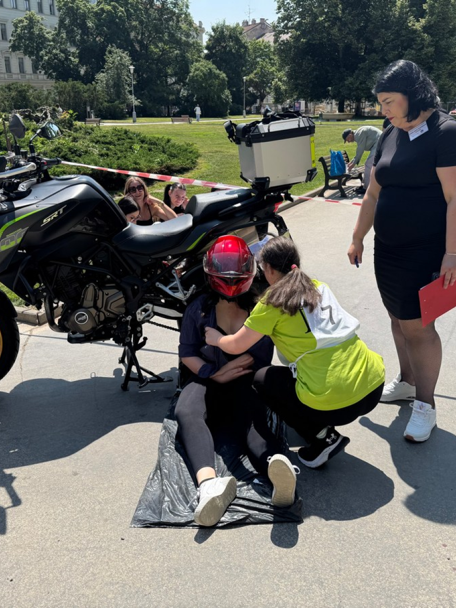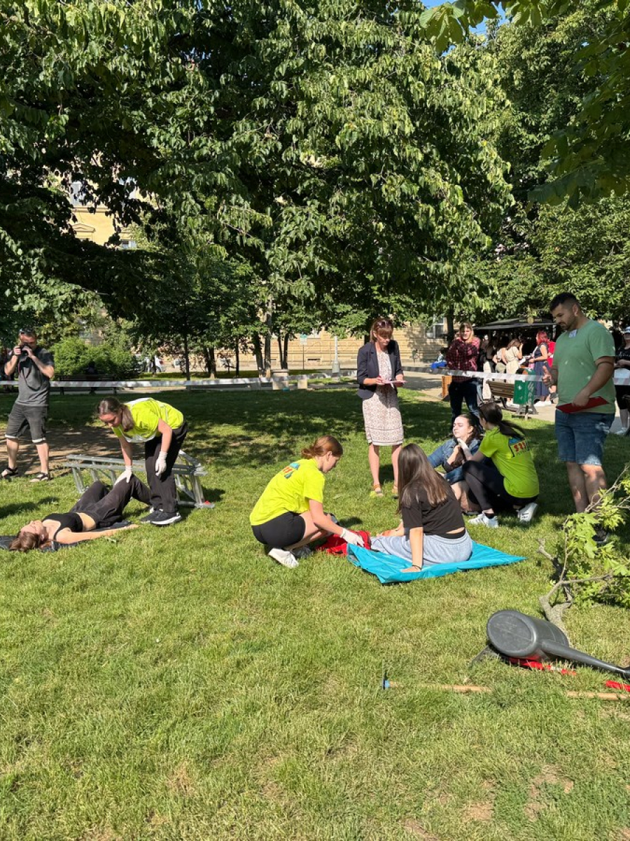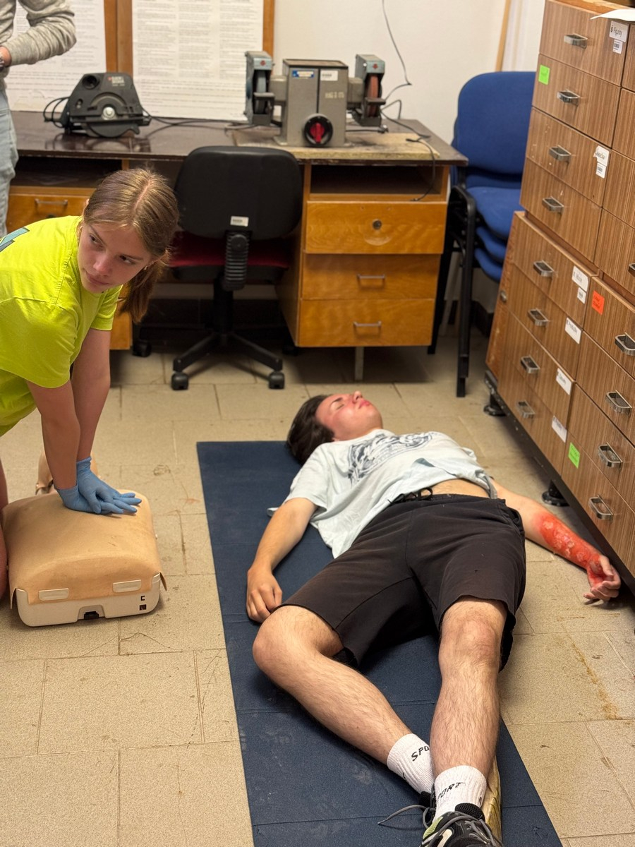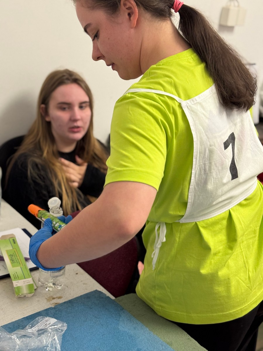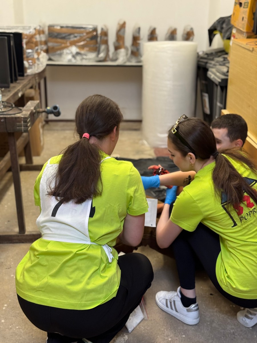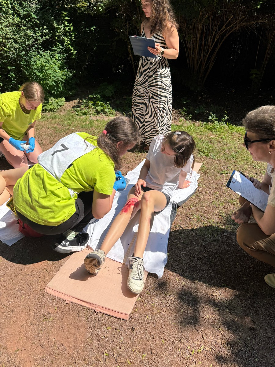 Súťaž preverila naše vedomosti aj praktické zručnosti – simulované zásahy v krízových situáciách vyžadovali rýchle rozhodovanie, tímovú spoluprácu a pohotové reakcie. Naše žiačky ukázali, že to zvládajú s prehľadom a odhodlaním. Na 5 stanovištiach poskytovali prvú pomoc raneným s otvorenou zlomeninou, tepnovým krvácaním, pri úraze el. prúdom, amputácii prstov, anafylaktickom šoku po uštipnutí včelou, dopravnej nehode s úrazom chrbtice, so zatvorenou zlomeninou ramena, pri zatvorenom pneumotoraxe, pri páde z rebríka pri práci v záhrade, pri vytknutí členka, pri úzkostnom stave, pri popálenine 1.stupňa a tržnej rane na brade, ale aj ranenému v bezvedomí.