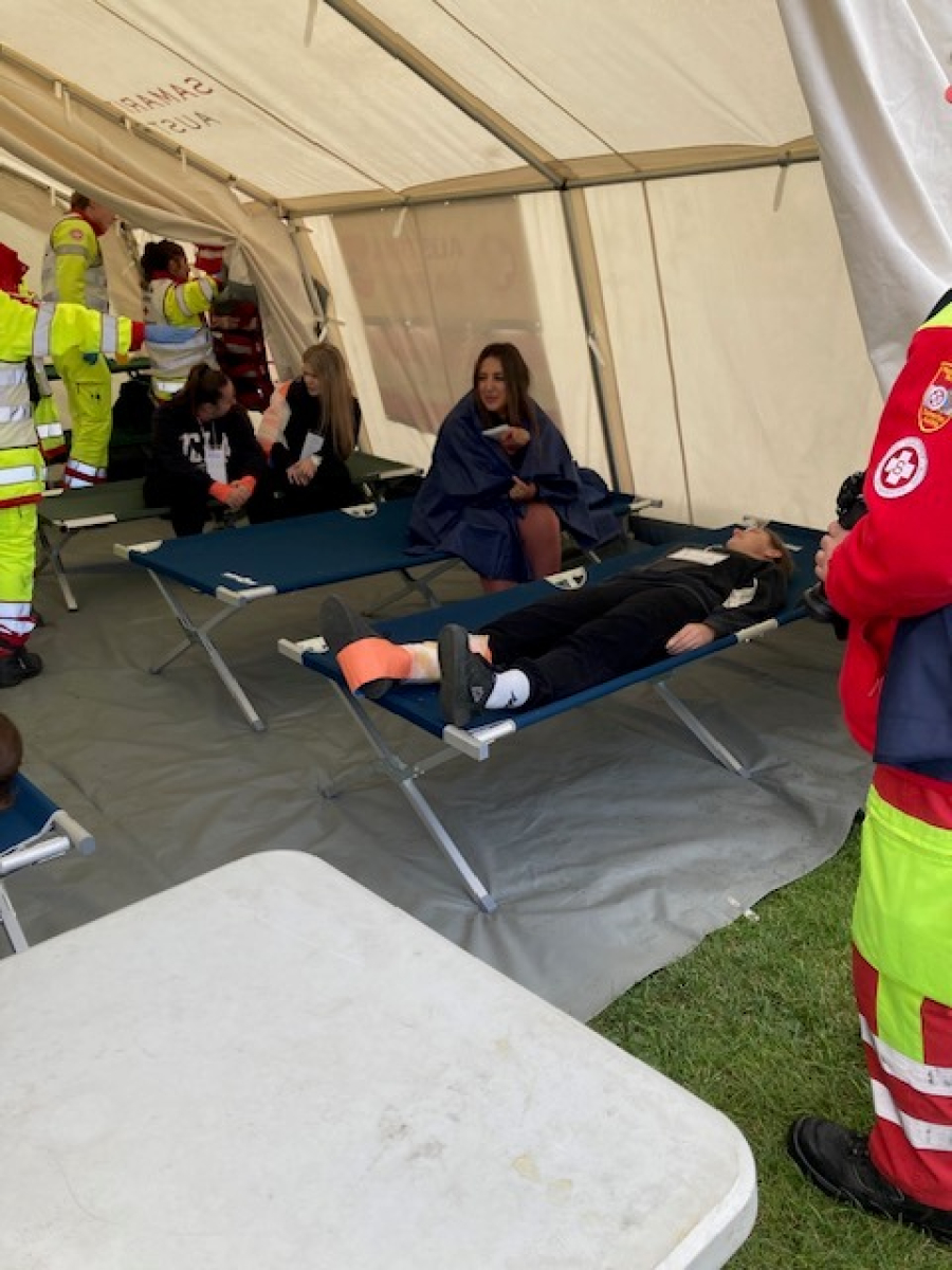 V dňoch 17.-20.9.2025 sa v Spišskej Belej-Strážkach uskutočnilo medzinárodné cvičenie Samaritánov SR a jej zahraničných kolegov z Rakúska a Nemecka. Naši študenti zo 4.PSB sa akcie zúčastnili ako figuranti v stredu a vo štvrtok. Zažili denný aj nočný program, najprv ako figuranti s rôznymi druhmi zranení, no a v nočnom programe boli umiestnení v opustenej budove kežmarských kasární, kde ich jednotlivé tímy museli vyhľadať a podľa druhu zranenia evakuovať.
