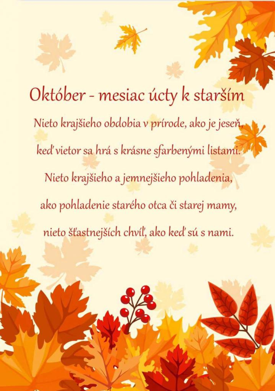 Mesiac úcty k starším nám pripomína, že staroba je prirodzenou súčasťou života, ktorá si zasluhuje rešpekt, starostlivosť a pozornosť. Ako spoločnosť sa musíme snažiť o to, aby seniori mali dôstojný život, plný radosti a aktívnych možností. Úlohou nás všetkých je vytvárať podmienky, v ktorých starší ľudia nebudú vnímaní len ako tí, ktorí potrebujú pomoc, ale ako plnohodnotní členovia spoločnosti, ktorí majú stále čo ponúknuť.