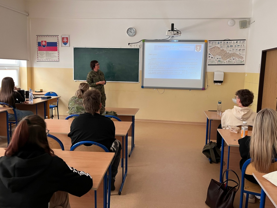 Ich prednáška sa zamerala na fungovanie vojenskej nemocnice a jej nasadenie v mierových aj bojových misiách. Zástupkyne podrobne objasnili prijímacie konanie a zároveň silno motivovali žiakov a žiačky, aby zvážili túto perspektívnu cestu štúdia a povolania.