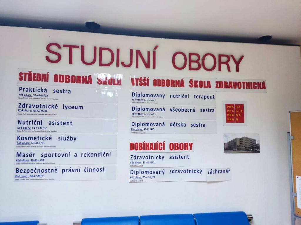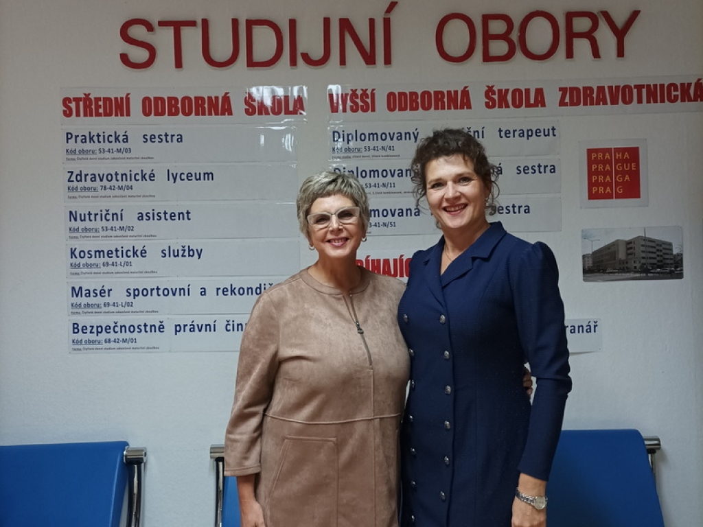 Ide o najväčšiu školu zdravotnícku v Českej republike. Tomuto faktu zodpovedali veľkorysé priestory školy, ktoré vznikli spojením dvoch budov a nespočetné množstvo zdravotníckych odborov. Sú zdokumentované na jednej z priložených fotografií. Školou nás sprevádzala a po celý čas nášho pobytu sa nám venovala vedúca odboru praktická sestra PhDr. Jana Uhrová. Pôvodom Slovenka z Humenného.