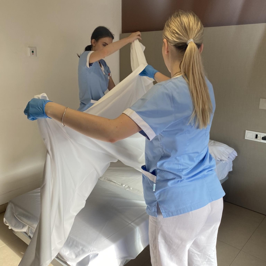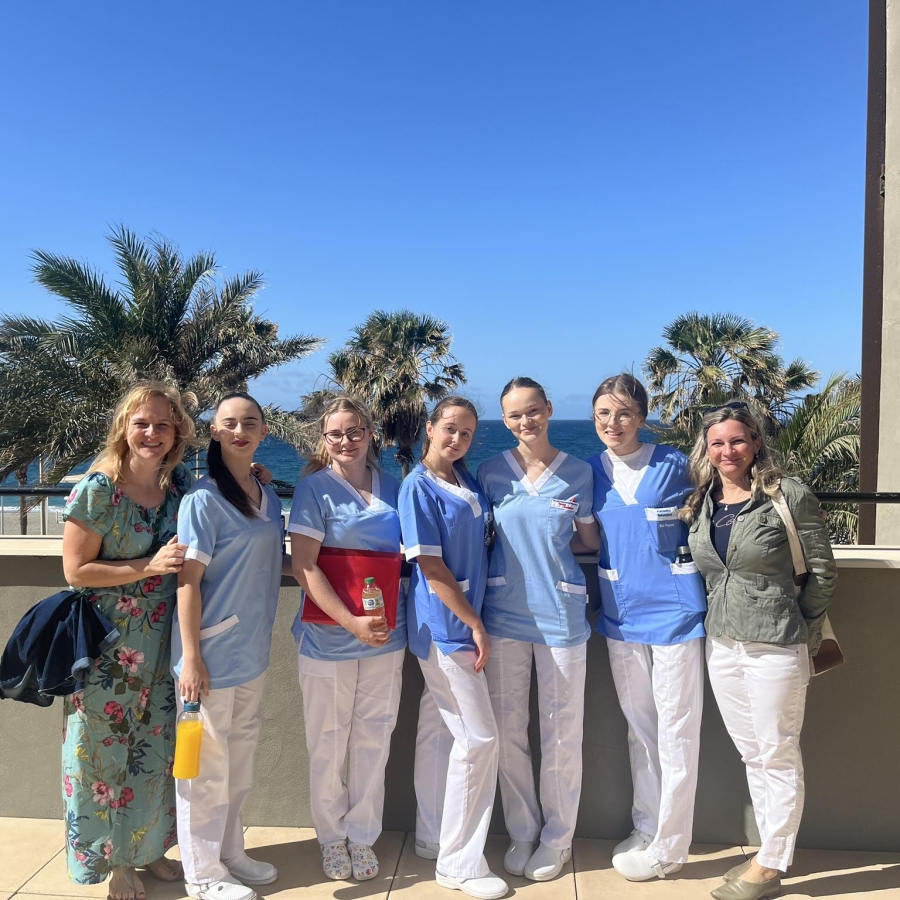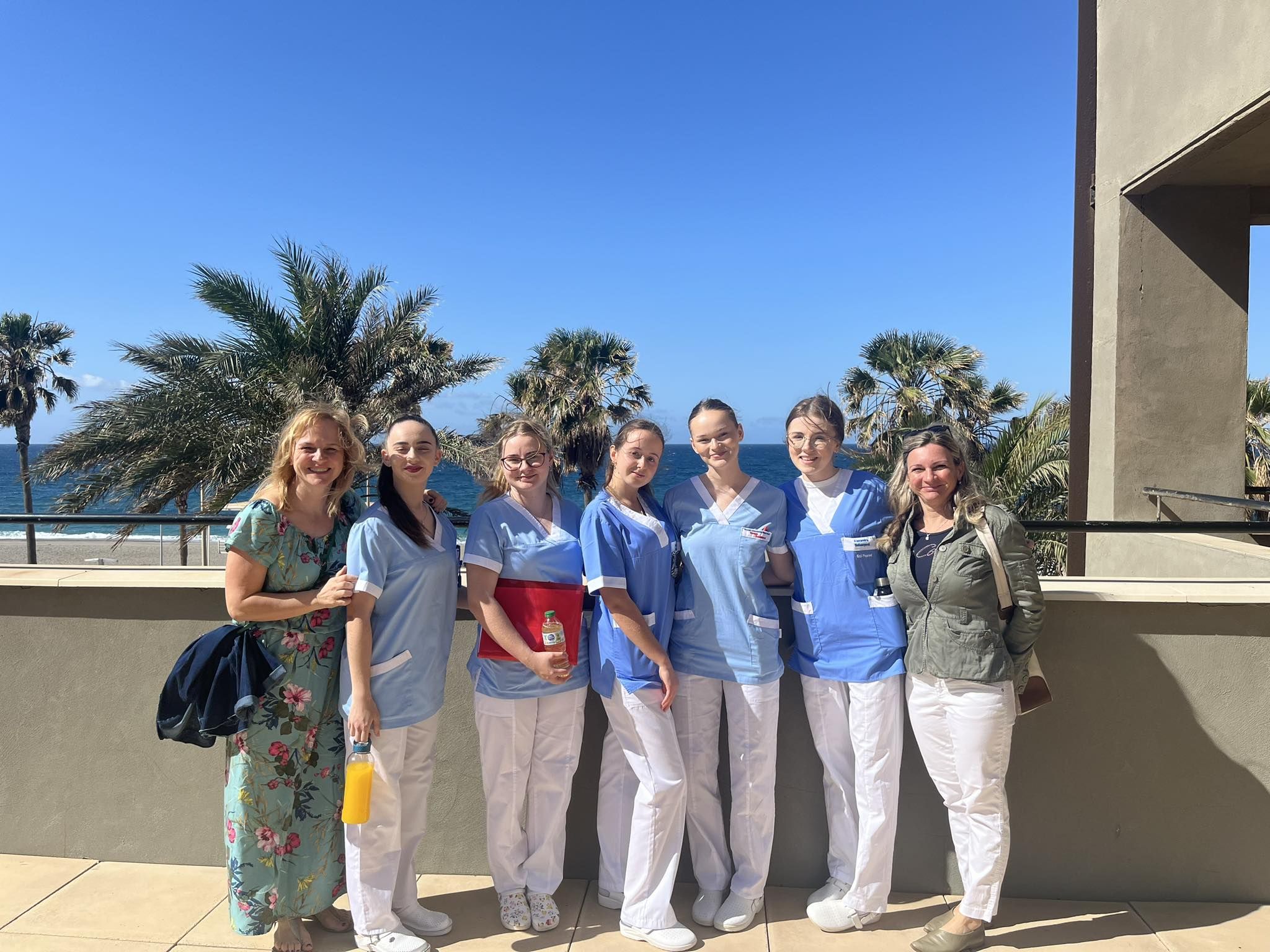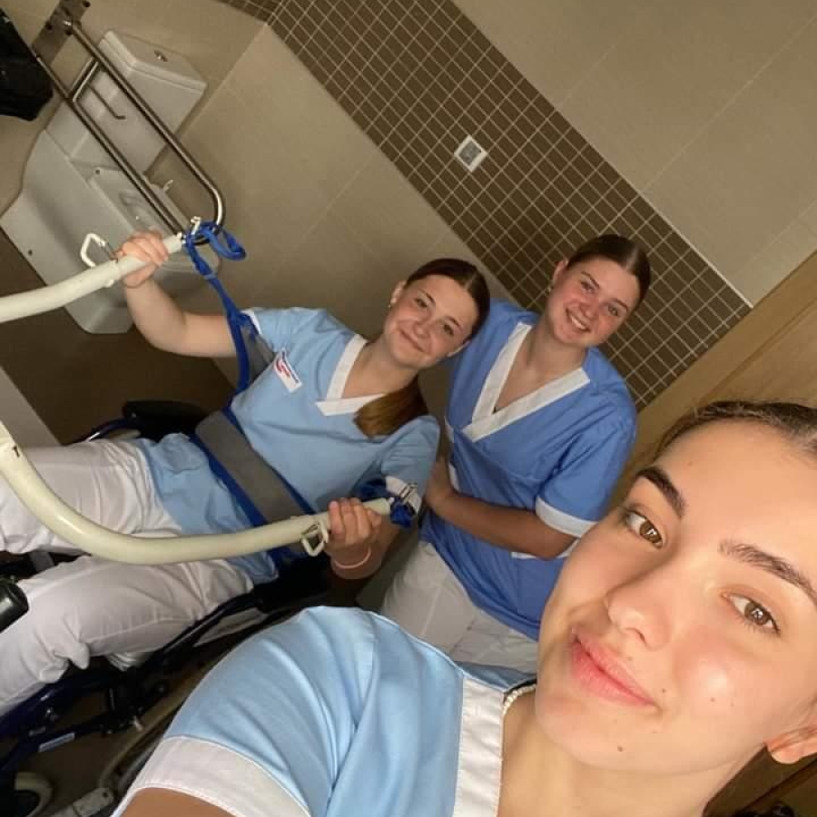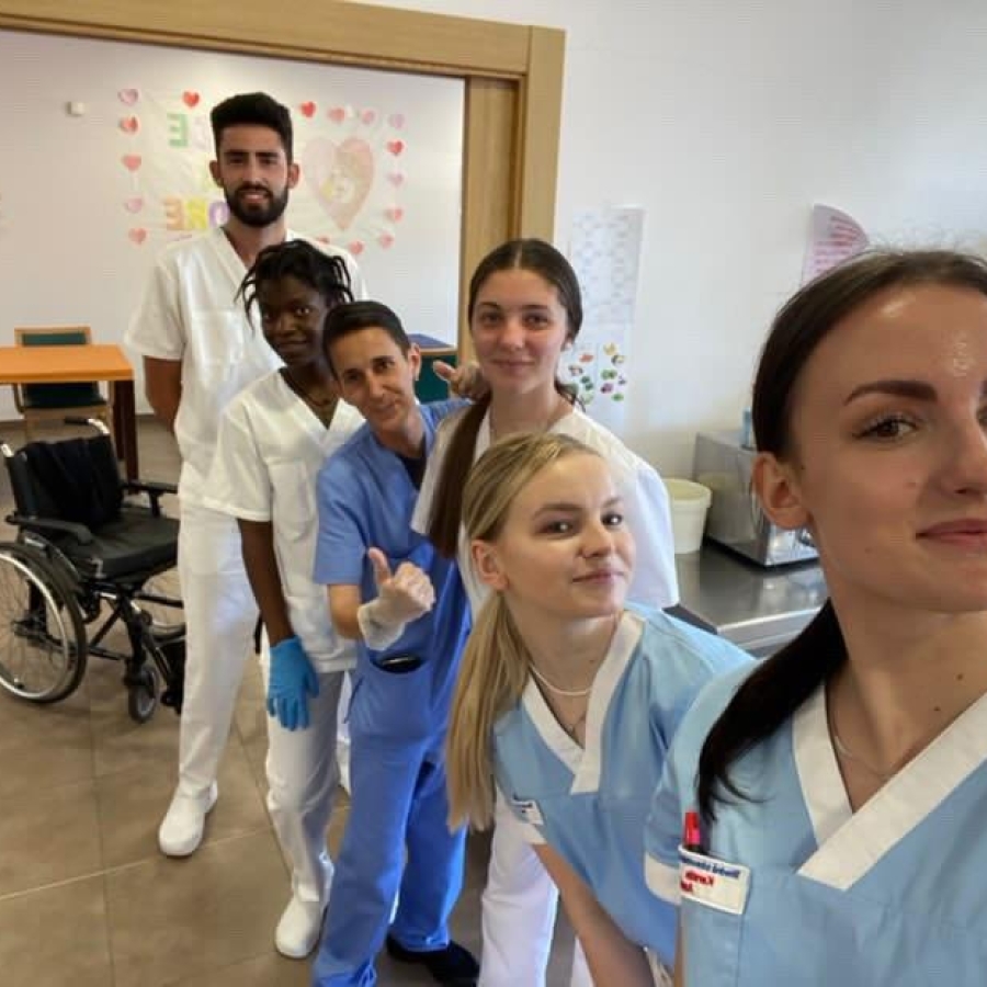 Pozdravujú vás dievčatá z 3.A a 3.B, skupiny La Esperanza - Henrieta, Kerstin, Viktória, Marianna, Tatiana a pani učiteľka Katarína Zahradníková a skupina El Zappillo- Simone, Tímea, Michaela, Marta, Alexandra a pani učiteľka Jana Kokoruďová. Od prvého dňa nás milý personál v centrách sociálnych služieb prijal s úsmevom na tvári. Komunikáciu zvládame veľmi dobre, pomáhame si gestikuláciou, posunkami, prekladačom, lebo angličtinu ovláda menšia časť španielov. Niekedy stačí, ak sa na nich usmejeme, pohladíme či ich objímeme. To všetko nás napĺňa energiou a každý deň sa tešíme čo nás ten ďalší čaká. Za tých pár dní čo tu sme, sme nabrali kopec nových odborných i pracovných skúseností, ale aj spomienok za čo ďakujeme projektu Erasmus+ pod vedením p.uč. Kataríny Zahradníkovej.