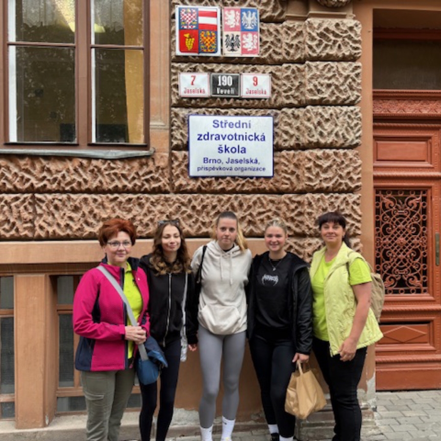 V rámci projektu Erazmus + sme sa v dňoch 11.6.-14.6.2024 zúčastnili súťaže v PRP , ktorú usporiadala SZŠ Jaselská Brno. Išlo 3. ročník krajskej súťaže pod záštitou hejtmana Juhomoravského kraja Mgr. Jana Grolicha. V rámci adaptácie na nové prostredie sme si pozreli školu aj jej sídlo Brno. Mali sme možnosť vidieť špičkovú učebňu ošetrovateľstva, vybavenú kvalitnými pomôckami aj ďalšie priestory školy. Absolvovali sme stretnutie s vedením školy na čele s pani riaditeľkou PhDr. Číkovou a jej zástupkyňami. V rámci mesta sme videli viacero zaujímavých pamiatok a miest, ktorými sa môže druhé najväčšie mesto Česka popýšiť. No a vo štvrtok 13.6. sme sa s našimi študentkami Simonou Jackovou z 3.B a Mariannou Koščákovou a Natáliou Šimonovou z 3.A zúčastnili samotnej súťaže v PRP.