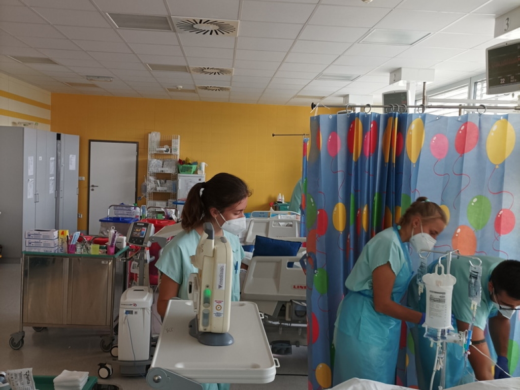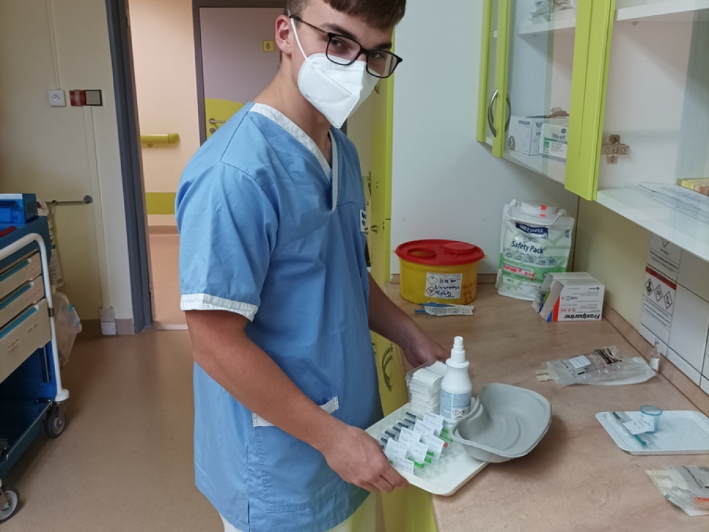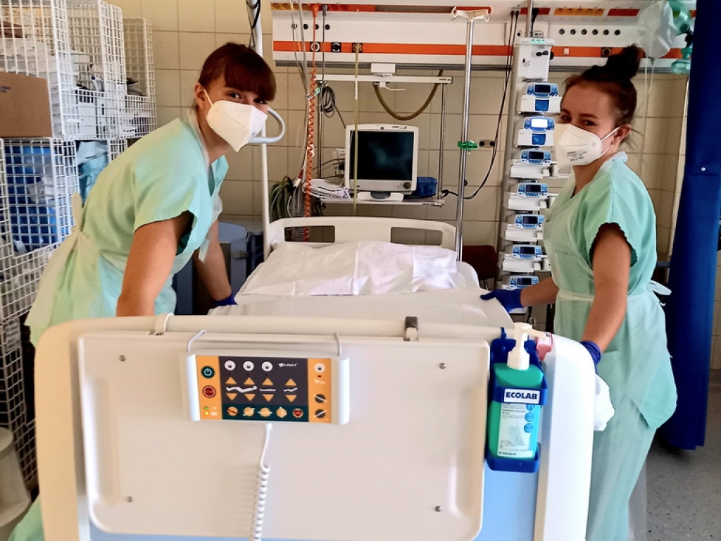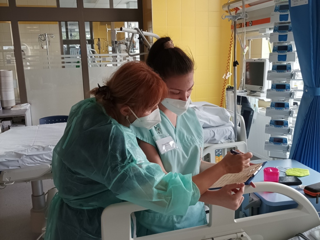 Počas intenzívnych 2 týždňov vykonávali odbornú stáž na pridelených oddeleniach Karlovarskej krajskej nemocnice a. s. . Každý z účastníkov mobility mal možnosť päť dní pracovať aj na jednotlivých úsekoch OAIM (oddelenia anesteziológie, resuscitácie a intenzívnej medicíny), kde sa na jej lôžkovej časti vykonáva komplexná starostlivosť o pacientov s akútnym kritickým ochorením, ako chirurgickej tak aj internej povahy. Žiaci na tomto oddelení mali možnosť pod vedením skúseného personálu asistovať alebo priamo vykonávať špecifické výkony, ku ktorým sa v domácich podmienkach dostanú veľmi zriedka alebo vôbec. Išlo napríklad o celkový kúpeľ pacienta na umelej pľúcnej ventilácii, odsávanie zo zaistených a nezaistených dýchacích ciest, odbery krvi z periférnych arteriálnych vstupov, príprava sterilného stolíka na rôzne malé chirurgické zákroky, spolupráca pri kardioverzii, napájaní pacienta na dialyzačný prístroj a podobne. Účastníci mobility tu mali možnosť vidieť moderné technické vybavenie, vrátane prenosného RTG a ultrazvukového prístroja, potrubnej pošty alebo prístroja na vyhodnocovanie ASTRUPU priamo na oddelení. Okrem daného oddelenia, žiaci v ďalších pracovných dňoch vykonávali odbornú stáž aj na štandardných ošetrovateľských jednotkách chirurgického, ortopedického, neurologického, urologického, traumatologického a kardiologického oddelenia. Prax na uvedených pracoviskách dala našim žiakom príležitosť dokázať svoje profesionálne schopnosti a pracovať v konkurencii zástupcov Karlovarskej zdravotníckej školy.Na základe pozitívnych hodnotení od vedúcich sestier jednotlivých oddelení môžeme povedať, že naši ani v tomto smere nesklamali a dôstojne reprezentovali Poprad svojím aktívnym a zodpovedným prístupom.